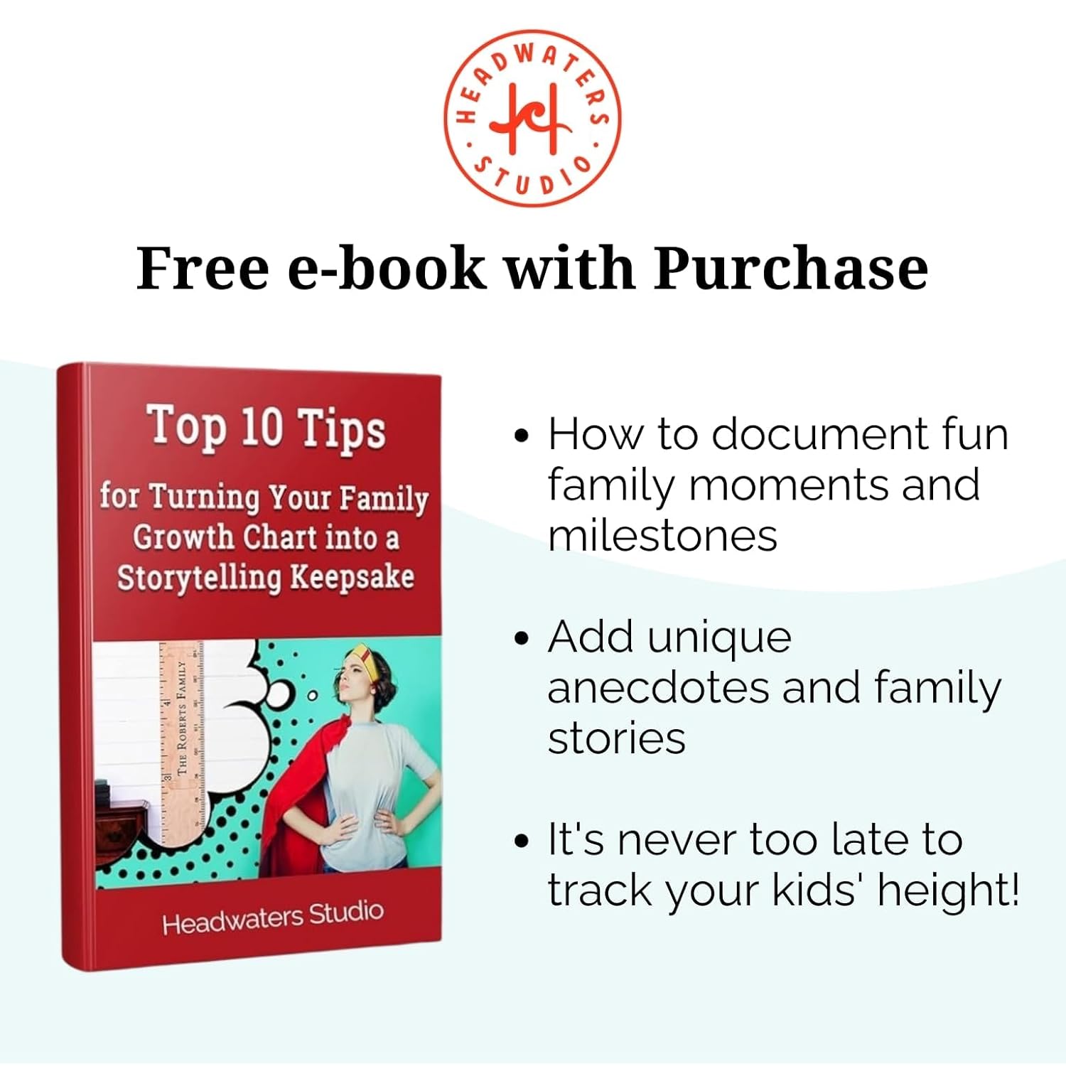 - EASY TO INSTALL AND DESIGNED FOR ALL AGES: With a convenient two-part folding design, our wall ruler for kids height measures up to 6'6", tracking growth for the entire family. Effortlessly install our height board growth chart to capture milestones not only for children but also for adults, making it a unique wooden height chart for kids that transcends generations. Each mark on this height measurement for kids becomes a cherished story to be celebrated forever.