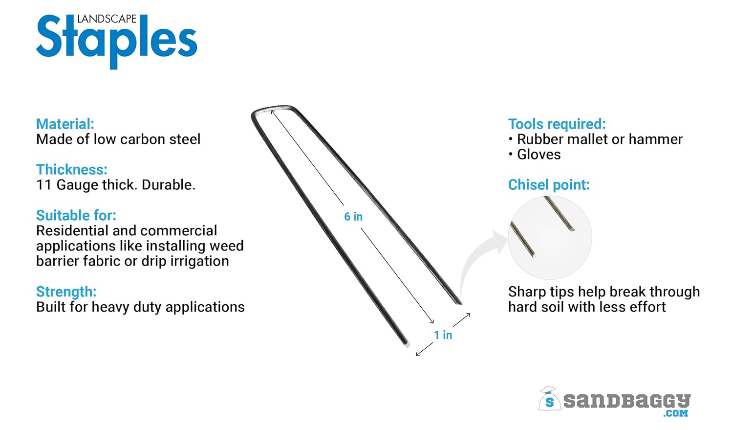 - SEEN EVERYWHERE ACROSS AMERICA - Whether on a job site, national park or airport across this country, Sandbaggy landscape fabric staples can be found securing landscape fabric & irrigation piping