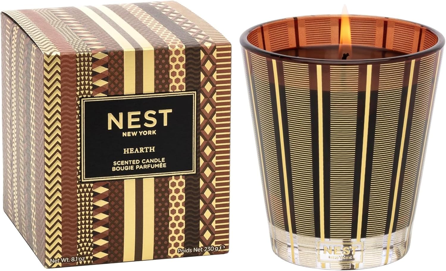 NEST New York Scented Classic Candle, Hearth - 8.1 oz - Up to 60-Hour Burn Time - Reusable Glass Vessel