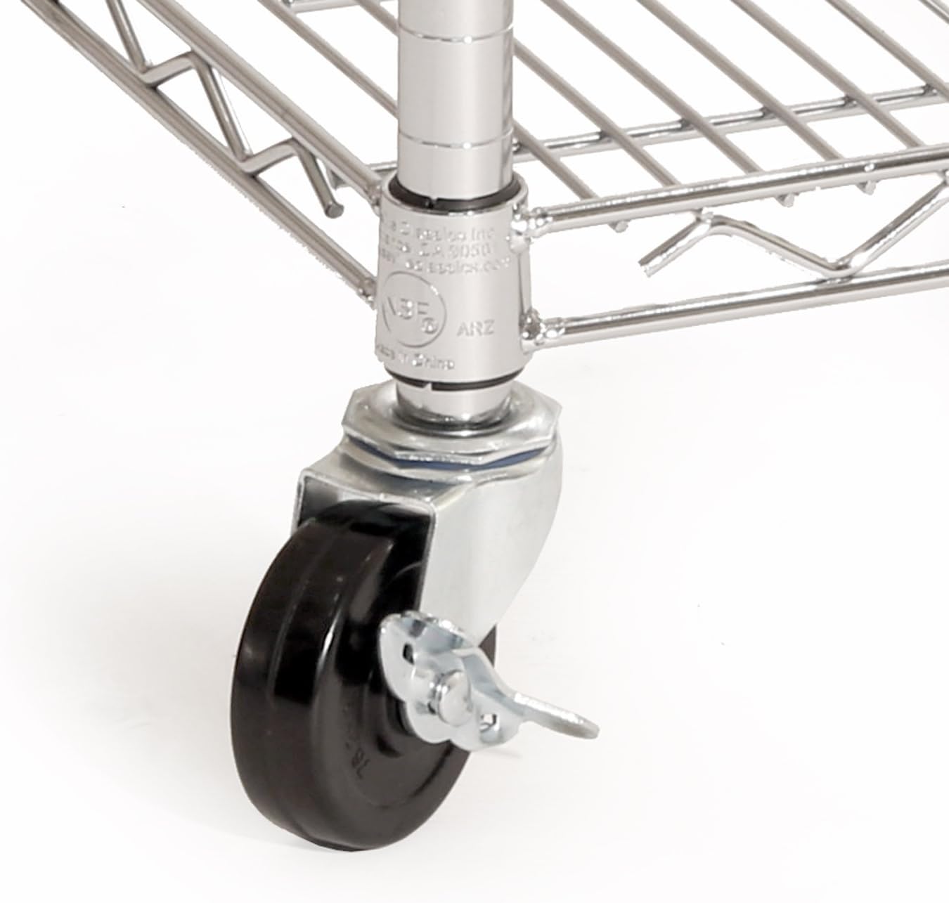 - What's in the Box? 4 pairs of poles (1" diameter), 5 shelves (18" x 60"), 4 wheels (3" diameter), 8 leveling feet, 20 slip sleeves
