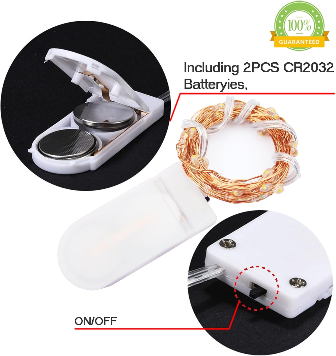 - Each fairy light is included CR2032 batteries, The battery box is with ON/OFF switch,simply switch on the lights and enjoy these amazing moon lightsThe battery of these short fairy lights last for 24hours around continuous life, The batteries need to be replaced when the lights get dim.