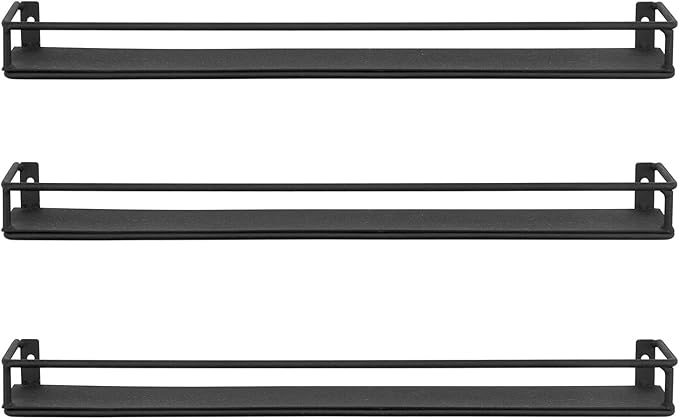 MyGift Set of 3 Wall-Mounted Black Metal Nail Polish and Essential Oils Display Shelves, Kitchen Spice Jars Rack