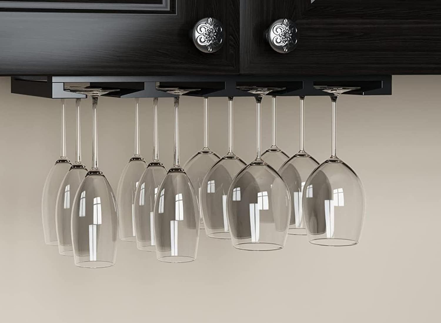 - FREE UP YOUR SPACE WITH STYLE - By hanging your glasses on the wine glass rack, you’re saving valuable space, while protecting your glasses from getting chipped and cracks