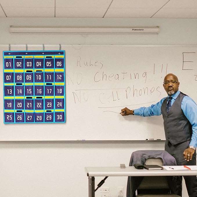 - 【Cell Phone Pocket Chart for Classroom】Used as classroom phone storage and calculator storage. Perfectly to hold students cell phone, calculators in class. Let students focus more on studying, say goodbye to students playing with their phones in class and create an efficient classroom.