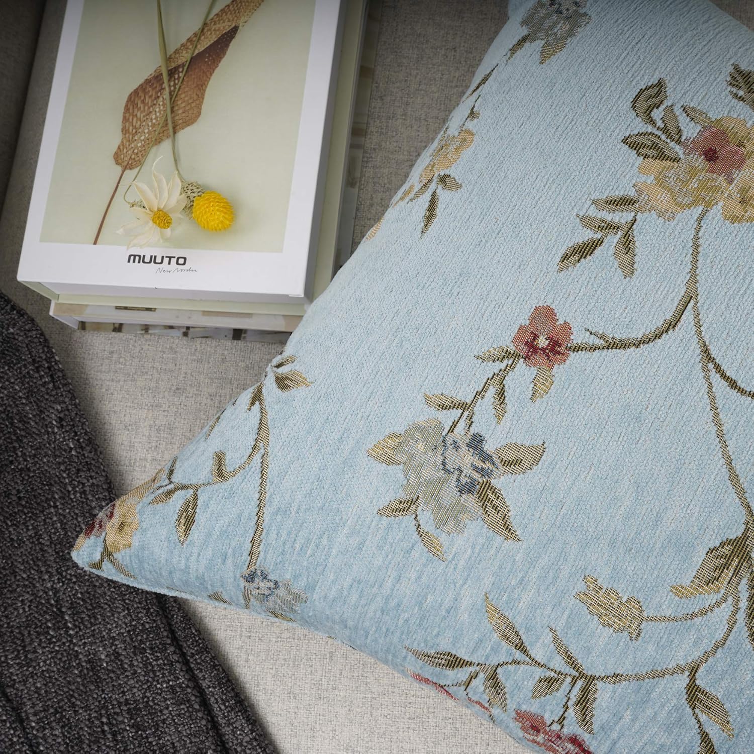 YOUR SMILE Embroidery Jacquard Teal Floral Leaf Pattern Square Decorative Throw Pillow Case Cushion Cover,18x18 inch