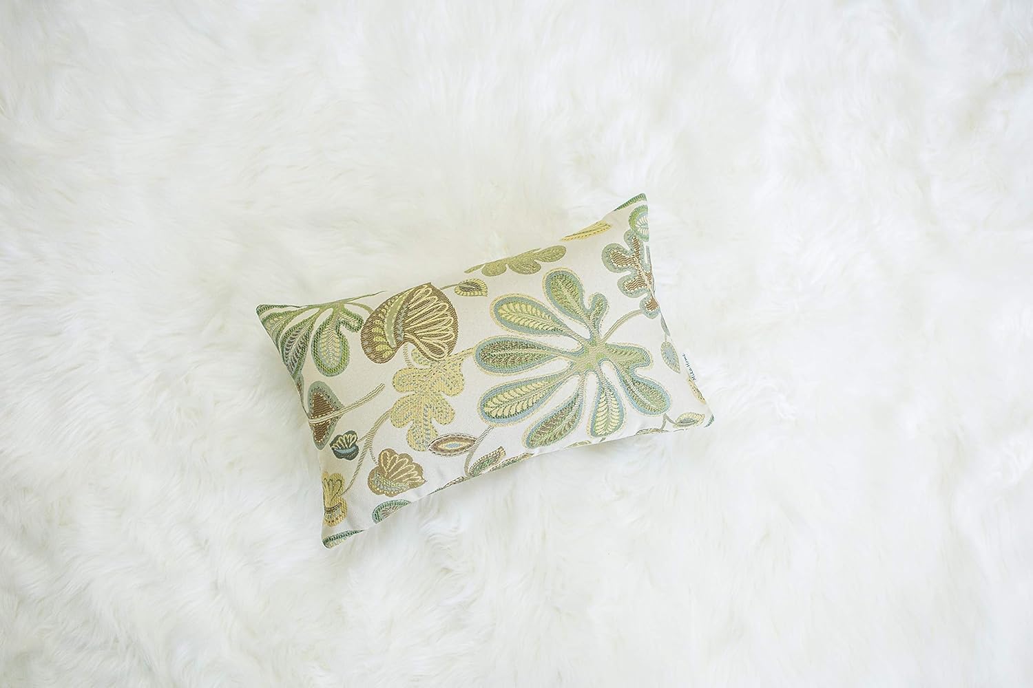 Set of 2 Jacquard Tropical Leaf Pattern Oblong Throw Pillow Covers Accent Pillowcase 12X20 Inches,Green Cream