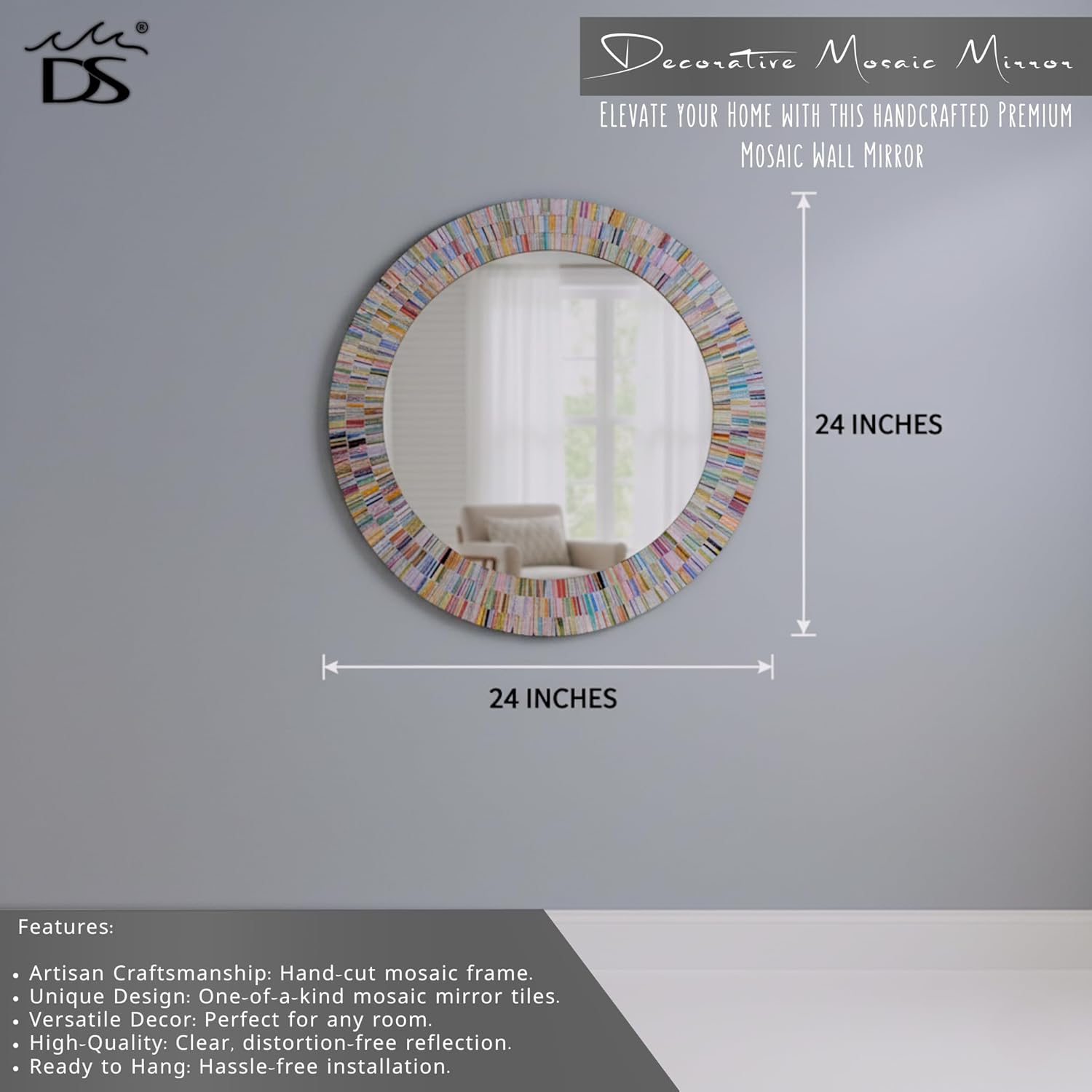- 24" Round Decorative Wall Mosaic Mirror with Rainbow Colored Mosaic Glass Tile Frame