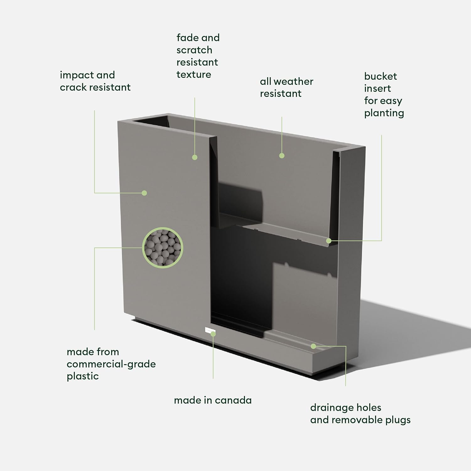 Veradek Block Series Span Plastic Planter - Tall Rectangular Planter for Indoor or Outdoor Patio/Porch, Gray, 30" in Height, 10" in Width, 38" in Length