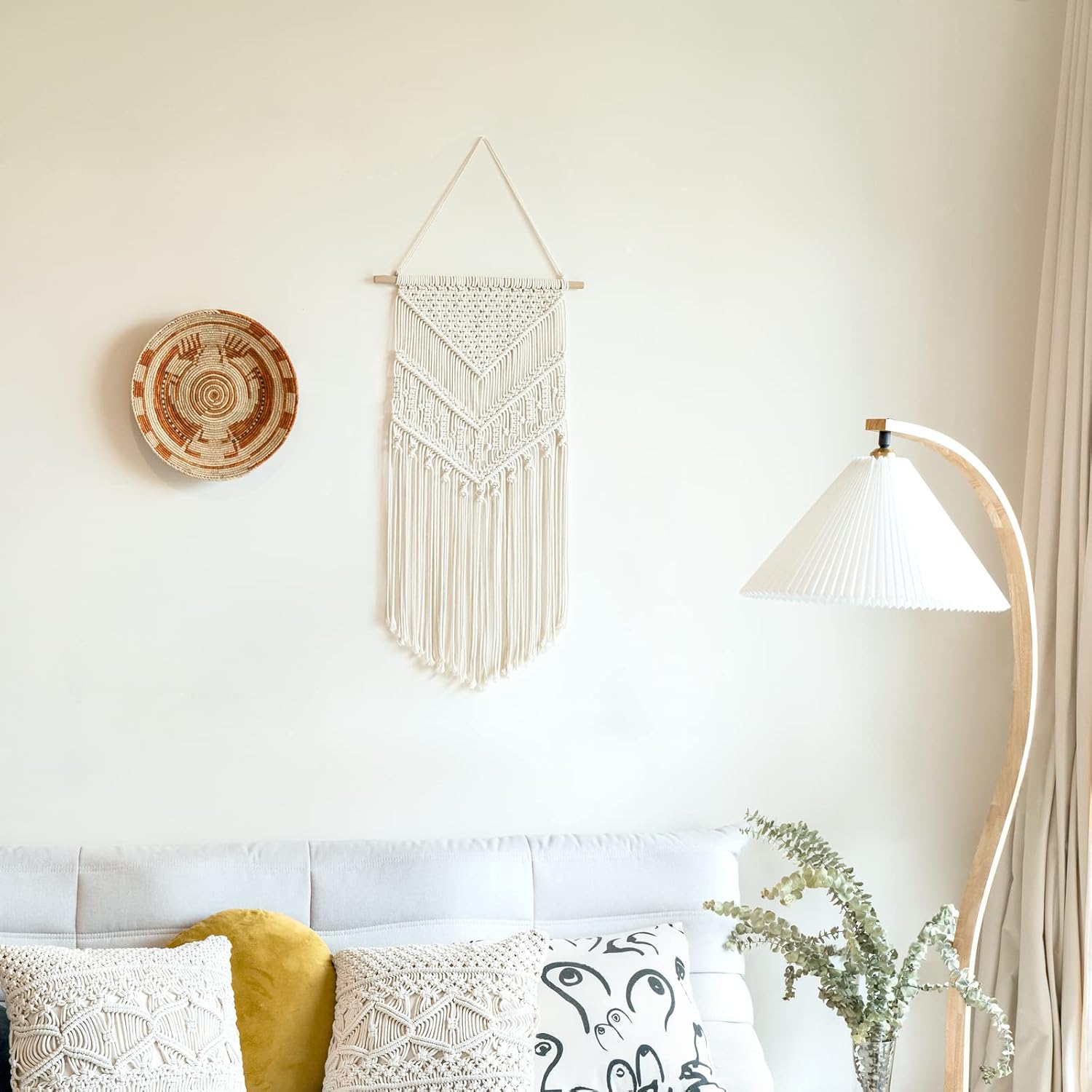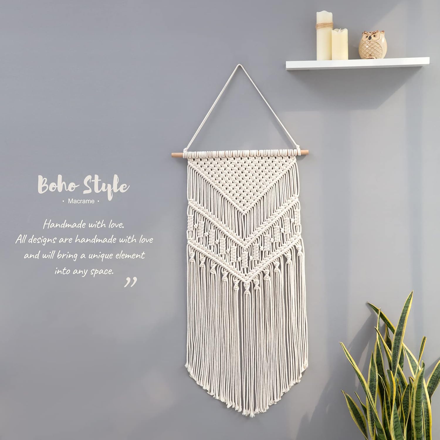 - Premium Material : This elegant macrame wall decor is made of cotton cord, without artificial ingredients or chemicals. Sturdy, sturdy and premium quality. The wall art decor creates a sense of harmony and comfort for your room