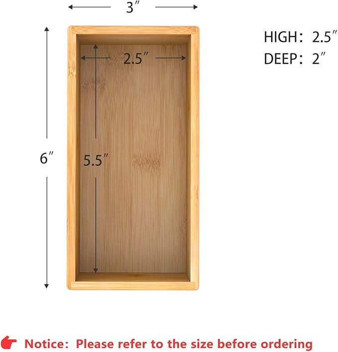 Bamboo Drawer Organizer Utensil Holder for Kitchen, Small Wood Silverware Storage Organizer, Stackable Box Tray for Cutlery, Flatware, Bathroom Caddy for Makeup, Perfume, Jewelry, 6x3x2.5 Inch