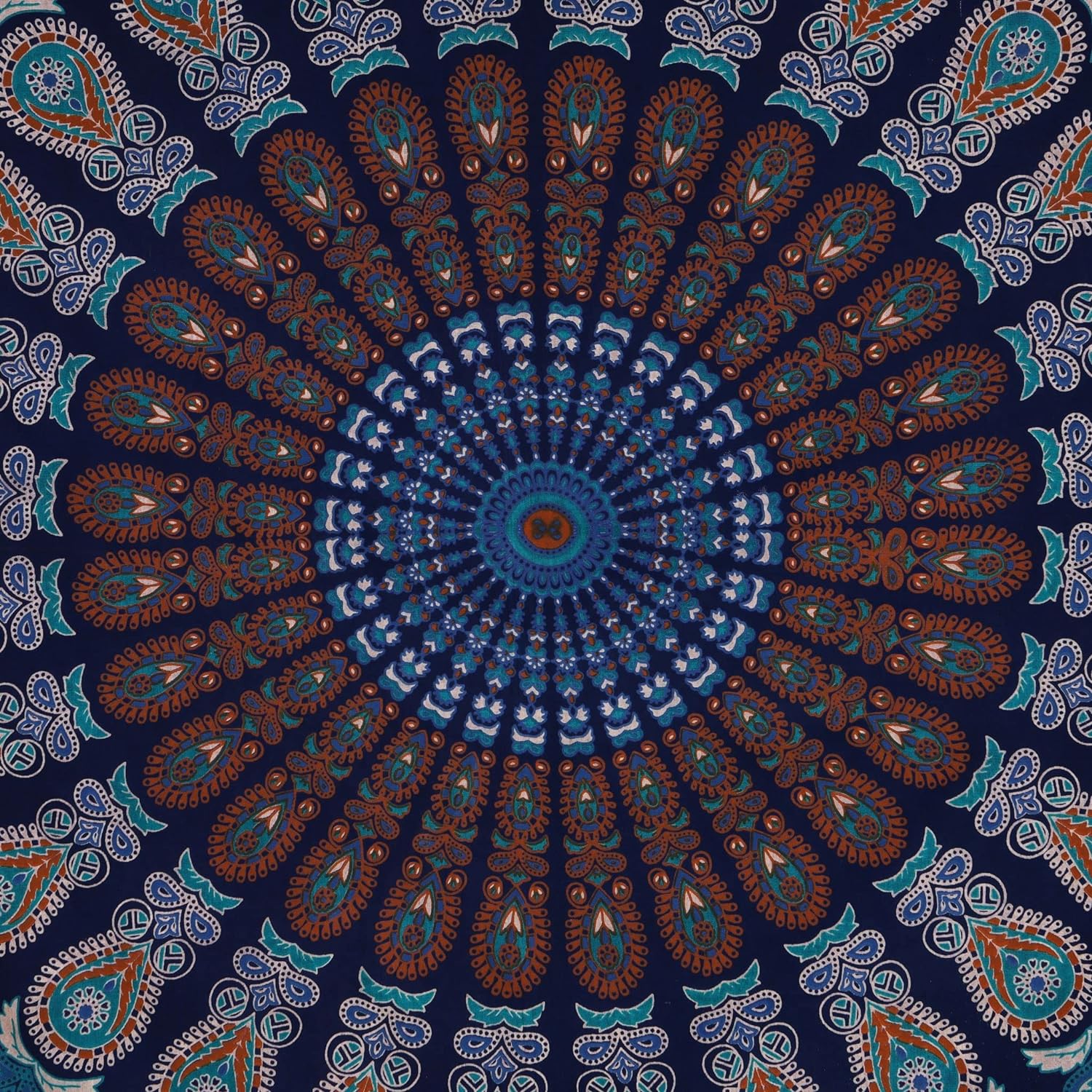 Bless International Handmade Indian hippie Bohemian Psychedelic Peacock Mandala Wall hanging College Dorm Beach Throws Table Cloth Bedding Tapestry (Blue Green, King(88x104Inches)(225x265Cms))