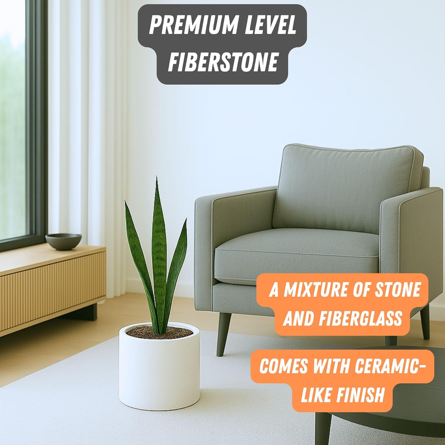 - INDOOR & OUTDOOR PLANT POT – Our plant pots are UV-resistant and frost-resistant, making them ideal not only for indoor use but also for outdoor use. Be it a cozy living room or a sunny balcony, our Fiberstone pots will look great in any setting.