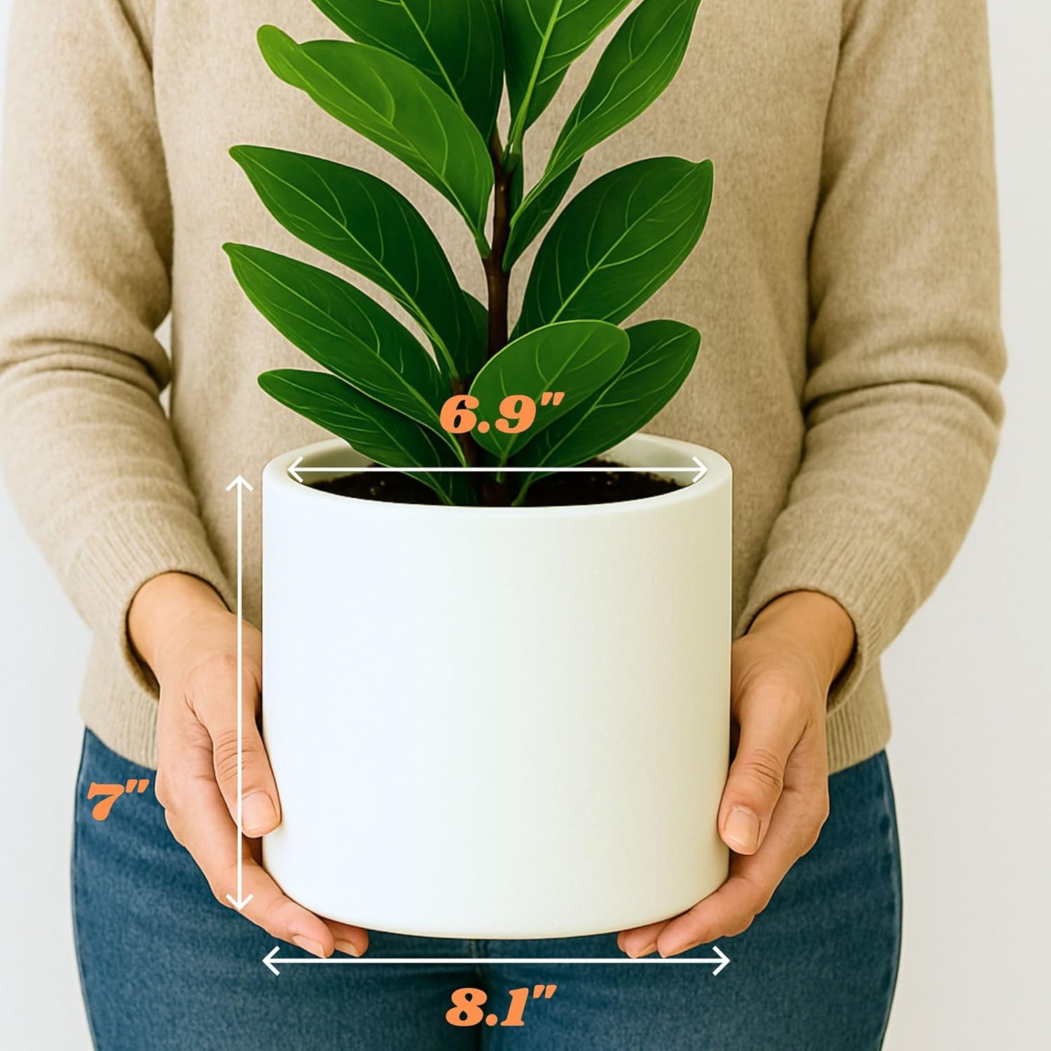 - THE PERFECT POT SIZE FOR YOUR PLANTS – Each flower pot is 8.1” in outer diameter and 6.9” in inner diameter, allowing you to conveniently fit your favorite plant. Dimensions: Outer width: 8.1" | Inner width: 6.9" | Height: 7.0"