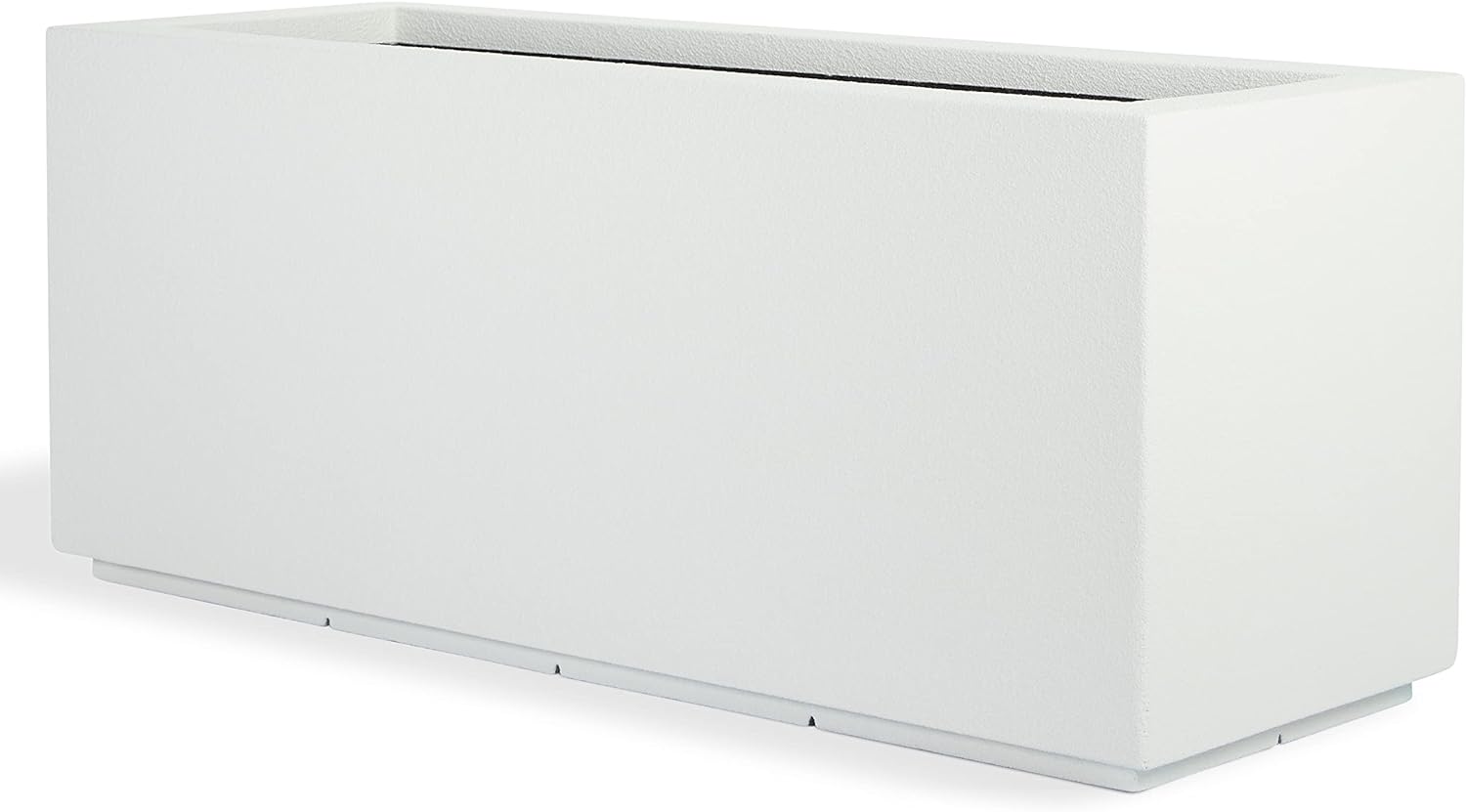 PolyStone Milan Tall Modern Outdoor/Indoor Rectangular Trough Planter, 46" L X 17" W X 19" H, Lightweight, Heavy Duty, Weather Resistant, Polymer Finish, Commercial and Residential (White)