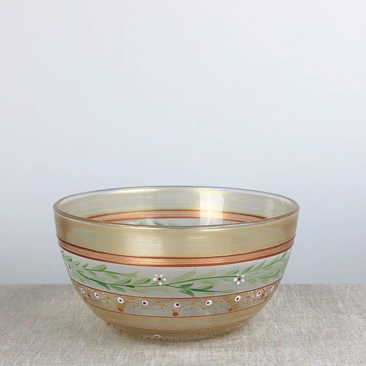 Crafted Creations Set of 2 Gold Mosaic Garland and Stripes Hand Painted Glass Serving Bowls 6"