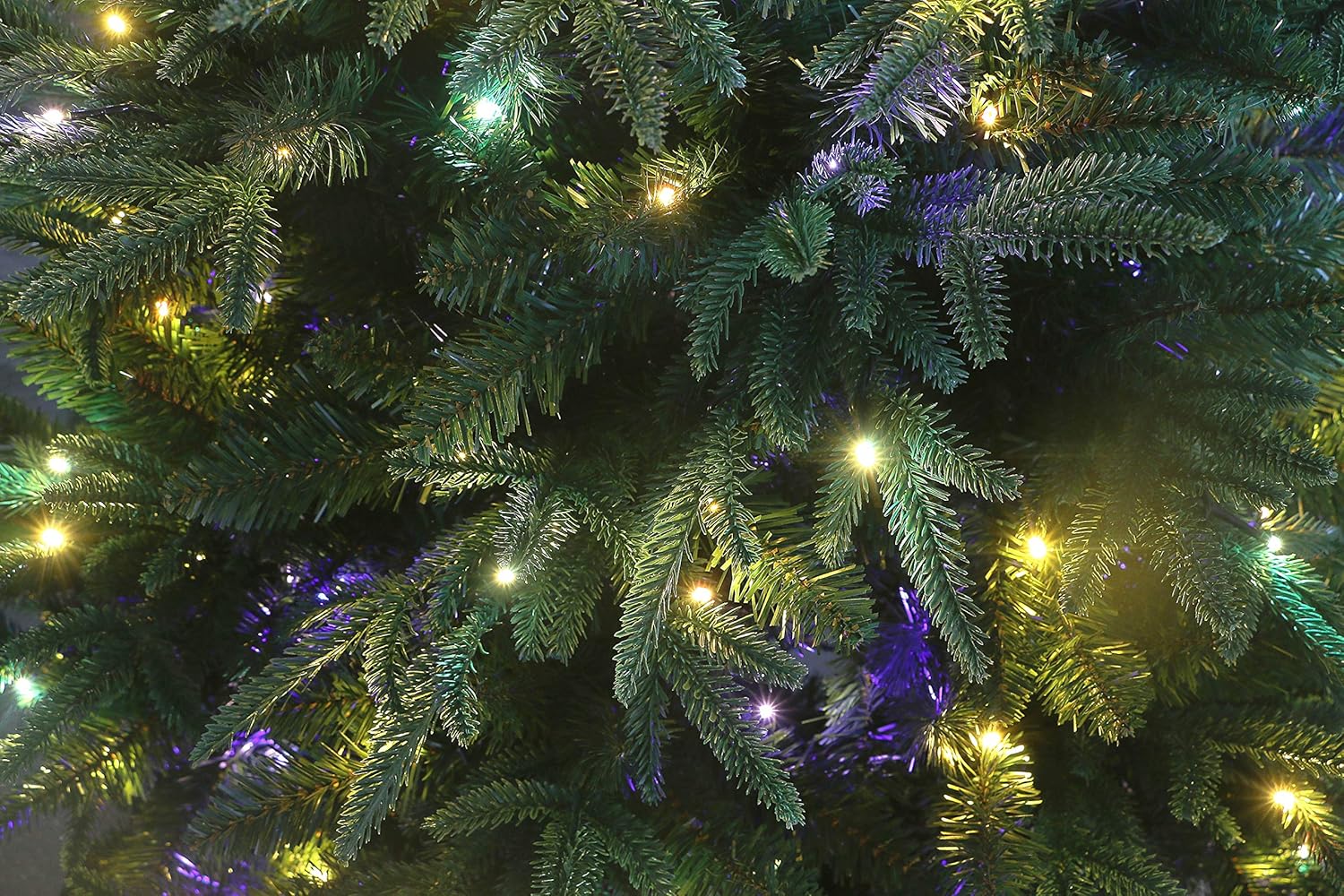 - LED lighting choices: 1) clear, 2) multicolored, 3) alternating from clear to multicolored. The same LED bulb changes from warm white to multi-clolor and different twinkling options. This lights giving your tree a different look with every click of a button.
