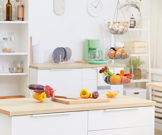 - Kitchen Organization - Display and organizer fruits in our heavy duty wire hanging fruit baskets to clearly see each fruit