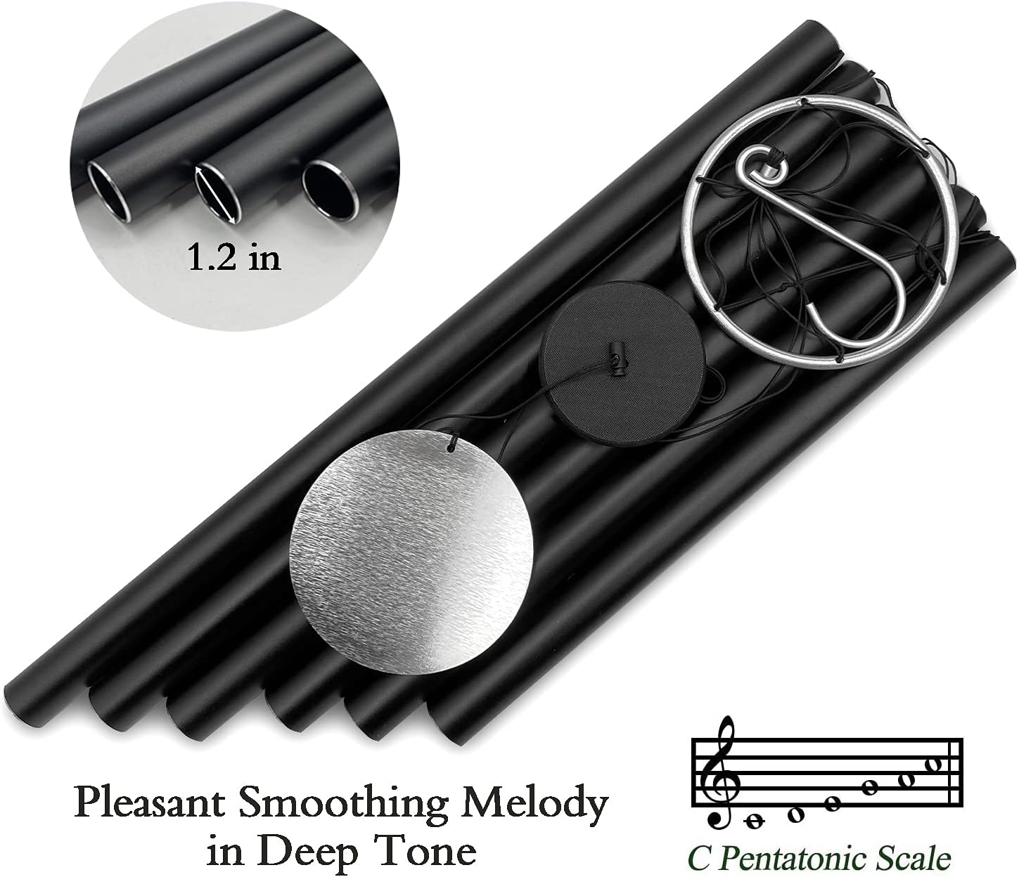 - 45 Inch large Wind Chimes - The longest tube of the large wind chimes is 23.6Inch,diameter is 1.2Inch.6 aluminum powder-coated tubes,every metal tube of this large wind chime is hand-tuned by our professional tuning experts to achieve a superior musical performance.Heavy duty nylon cording high density striker for a clear tone and resonances.