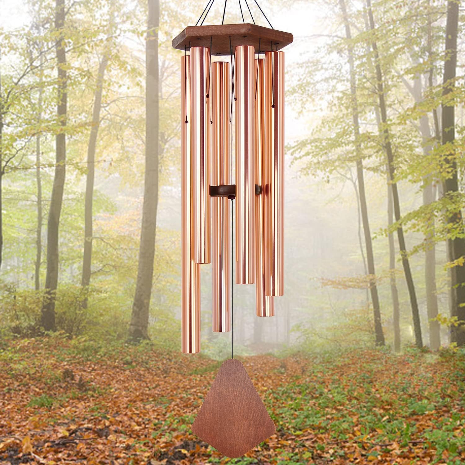 - ♪Large Wind Chimes Outdoor Deep Tone- Total hanging overall length is 44” with a stronger metal hook. The longest tube is 23.6''. Big wind chimes produce lower, fuller ,deep tone.6 aluminum powder-coated tubes are hand-tuned by our professional tuning experts to achieve a superior musical performance. Heavy duty nylon cording high density beech wood striker made from FSC-Certified wood, for a clear tone and resonances. Thick tubing wall creates a longer lasting deep tone. The sound is soft, deep tone and relaxing .