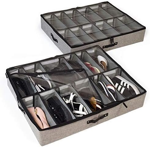 - HIGH CAPACITY: Measures 30'' x 24.5'' x 5.3'' and holds up to 12 pairs of shoes each. The adjustable dividers make this under-bed storage work as a shoe organizer, clothes organizer, blanket organizer, etc.
