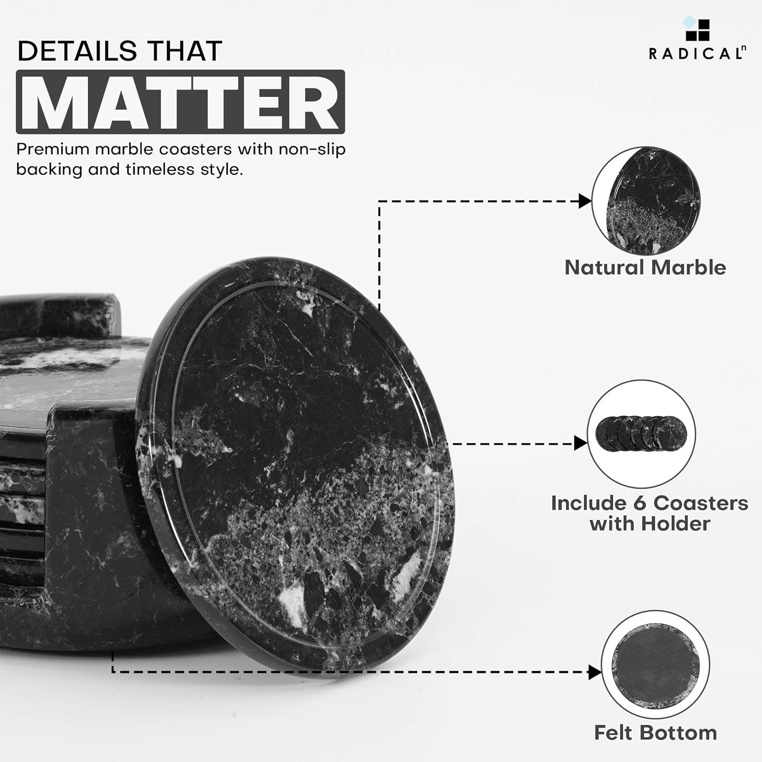 - WHAT IS INCLUDED - 1x Coaster Set. Come along with RADICALn branded secure packaging.