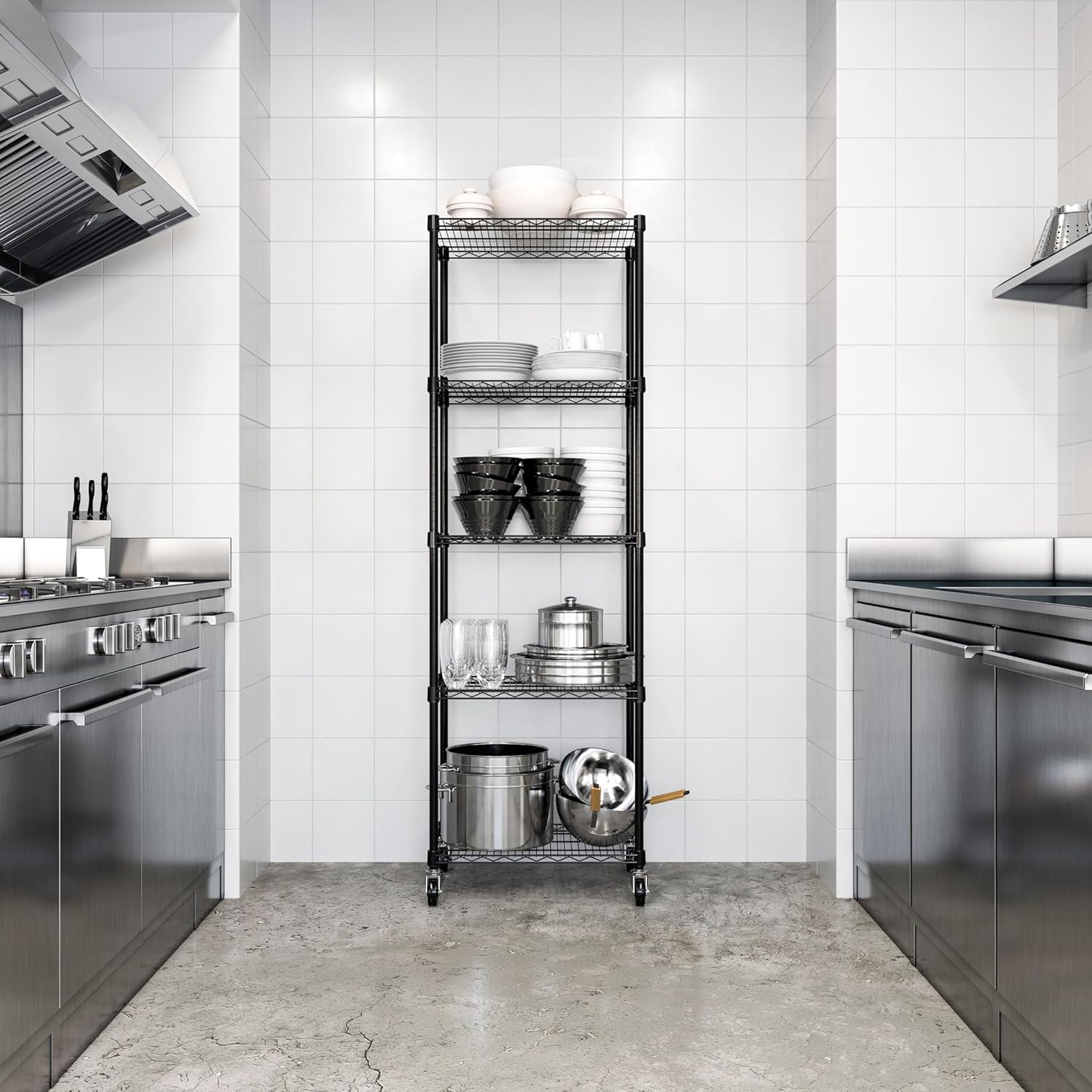 Seville Classics UltraDurable Heavy Duty NSF Solid Steel Wire Rack Storage Unit, Organizer for Garage, Warehouse, Office, Restaurant, Classroom, Kitchen, Black, 5-Tier Shelving, 24" W x 18" D