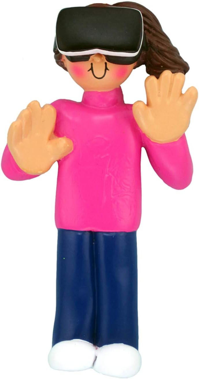 Elves Personalized Video Game Ornaments 2024 - Brunette Girls Gamer Ornaments for Christmas Tree
