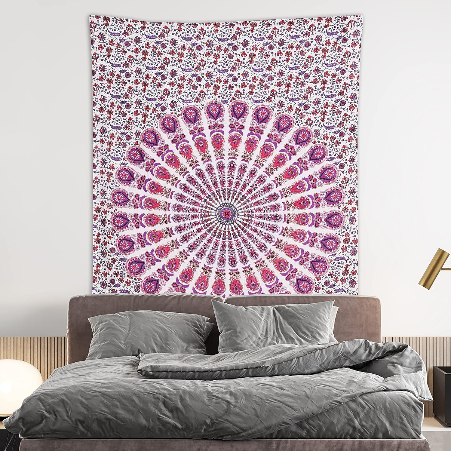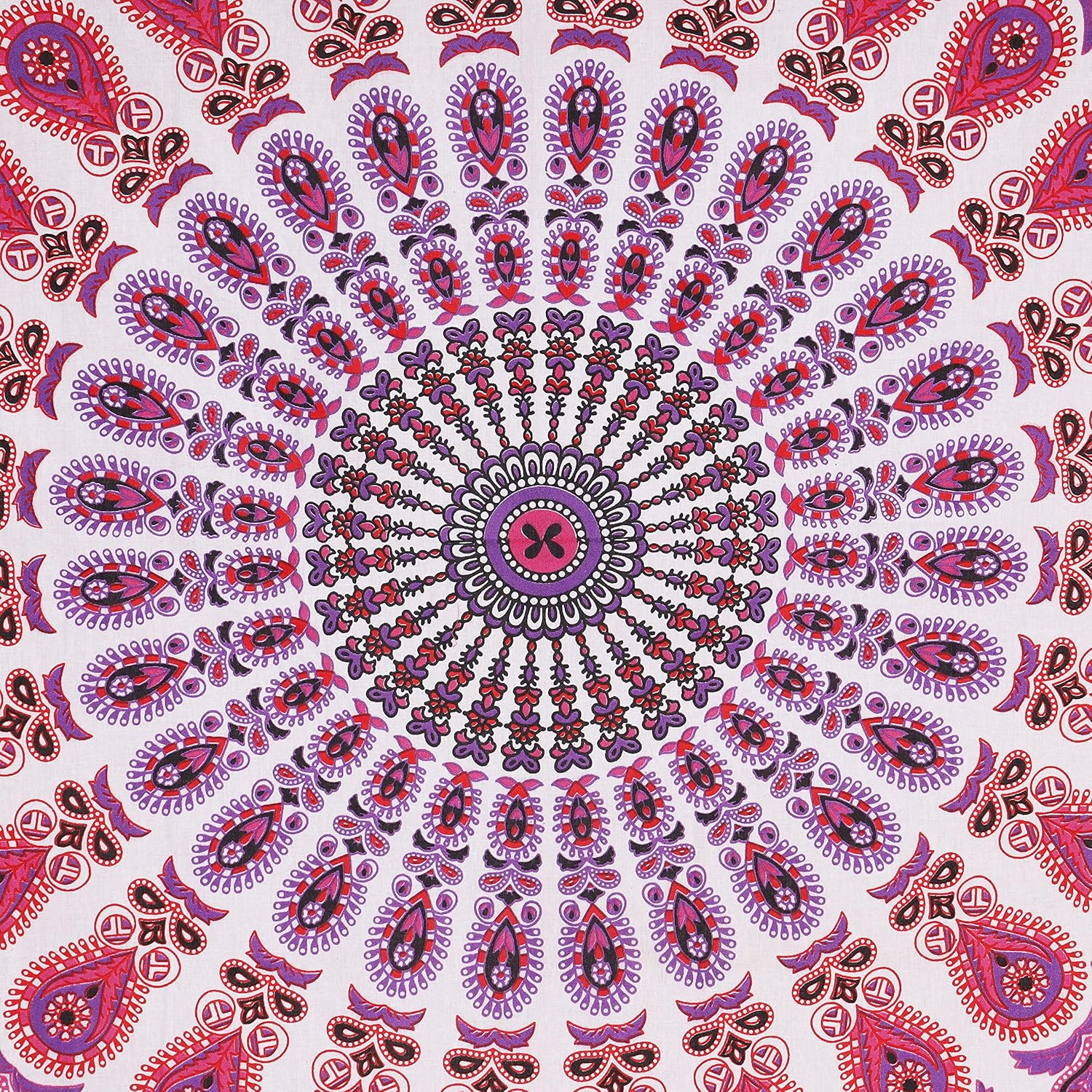 Bless International Handmade Indian hippie Bohemian Psychedelic Peacock Mandala Wall hanging College Dorm Beach Throws Table Cloth Bedding Tapestry (Pink Blue, Twin(54x72Inches)(140x185cms))