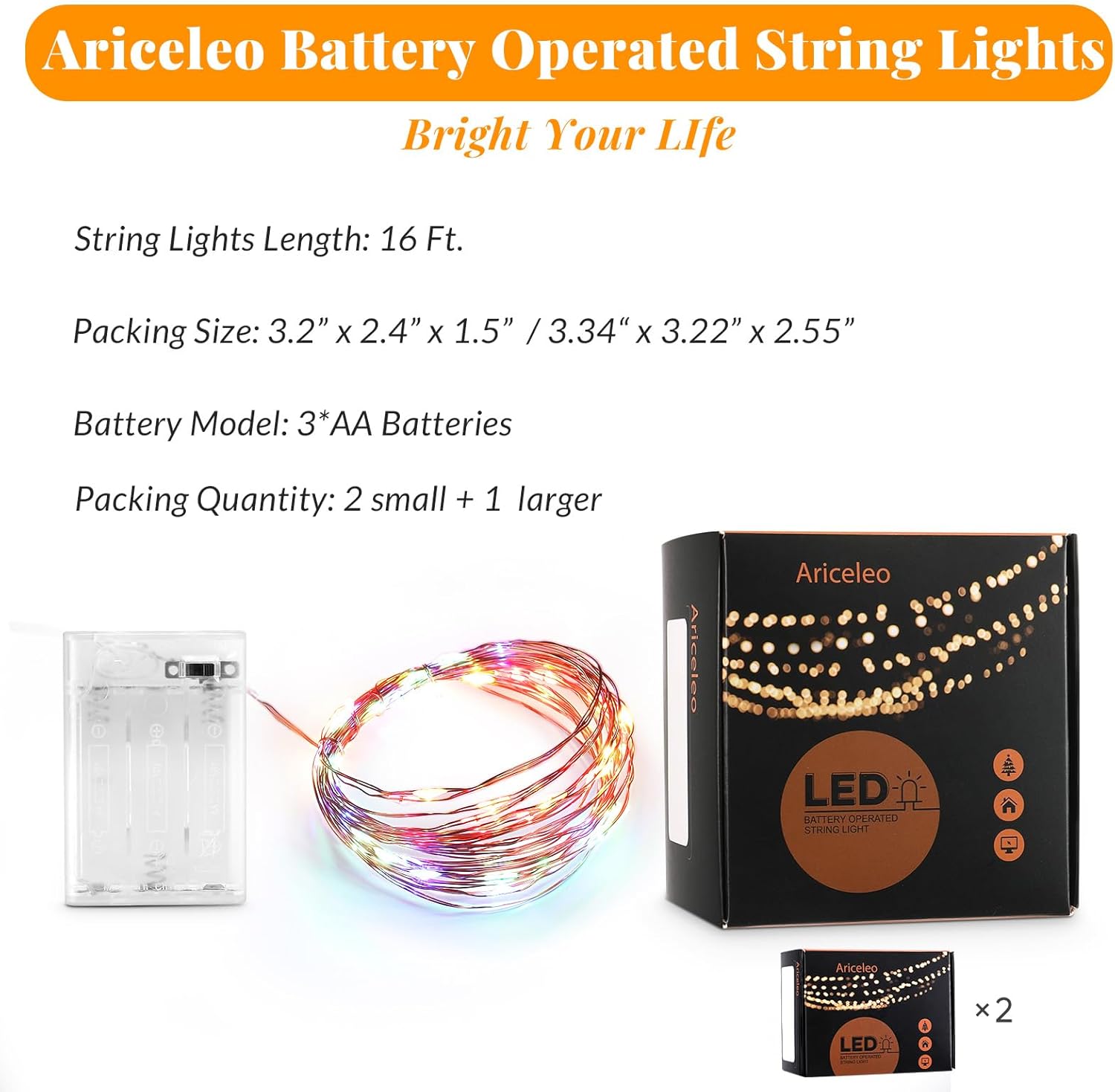 - Long Battery-Operated String: 16.4 feet of copper wire with 50 LEDs for extended lighting