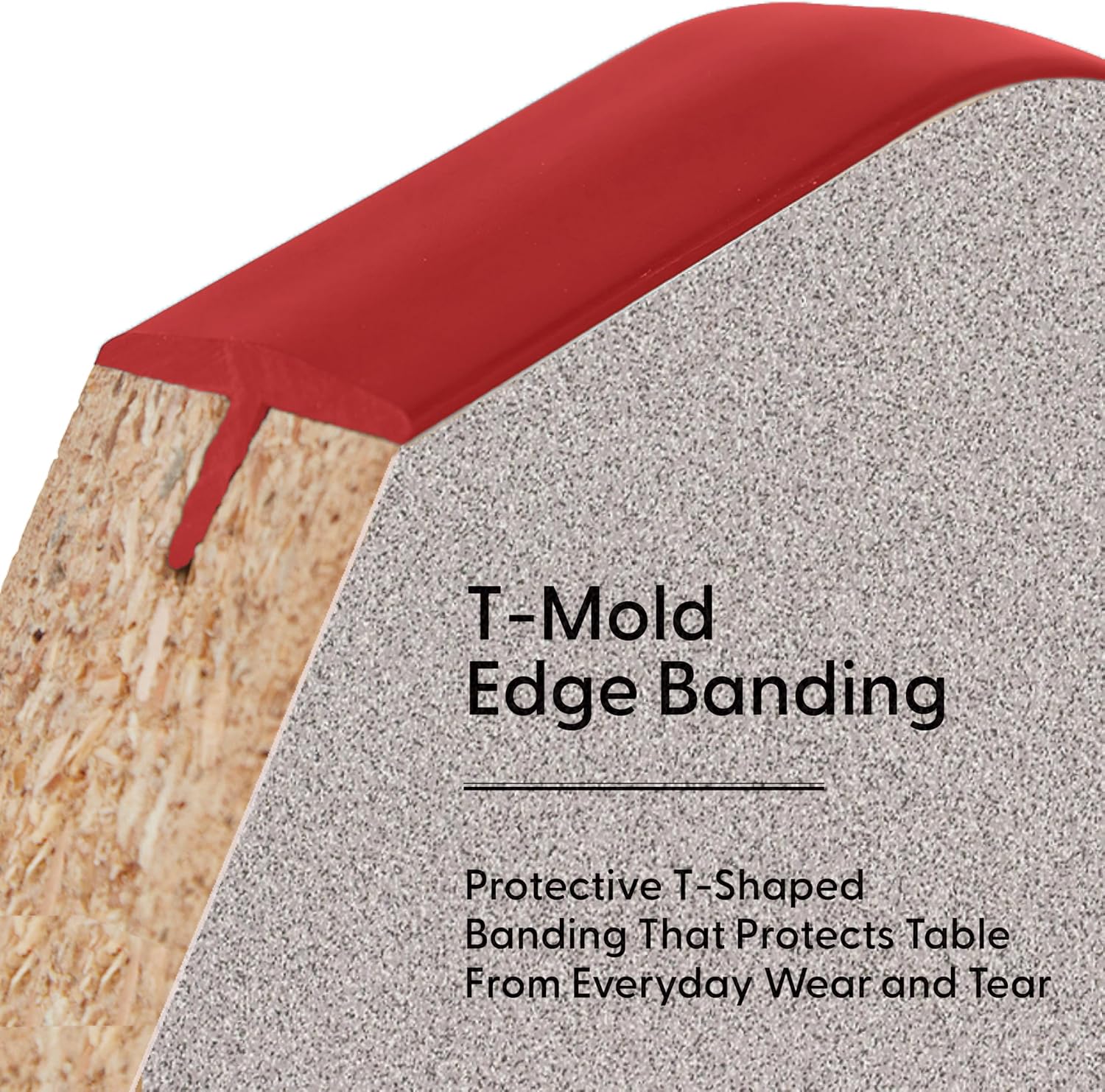 FDP Rectangle Activity School and Classroom Kids Table (24 x 72 inch), Chunky Toddler Legs, Adjustable Table Height 15-24 inches - Gray Top and Red Edge