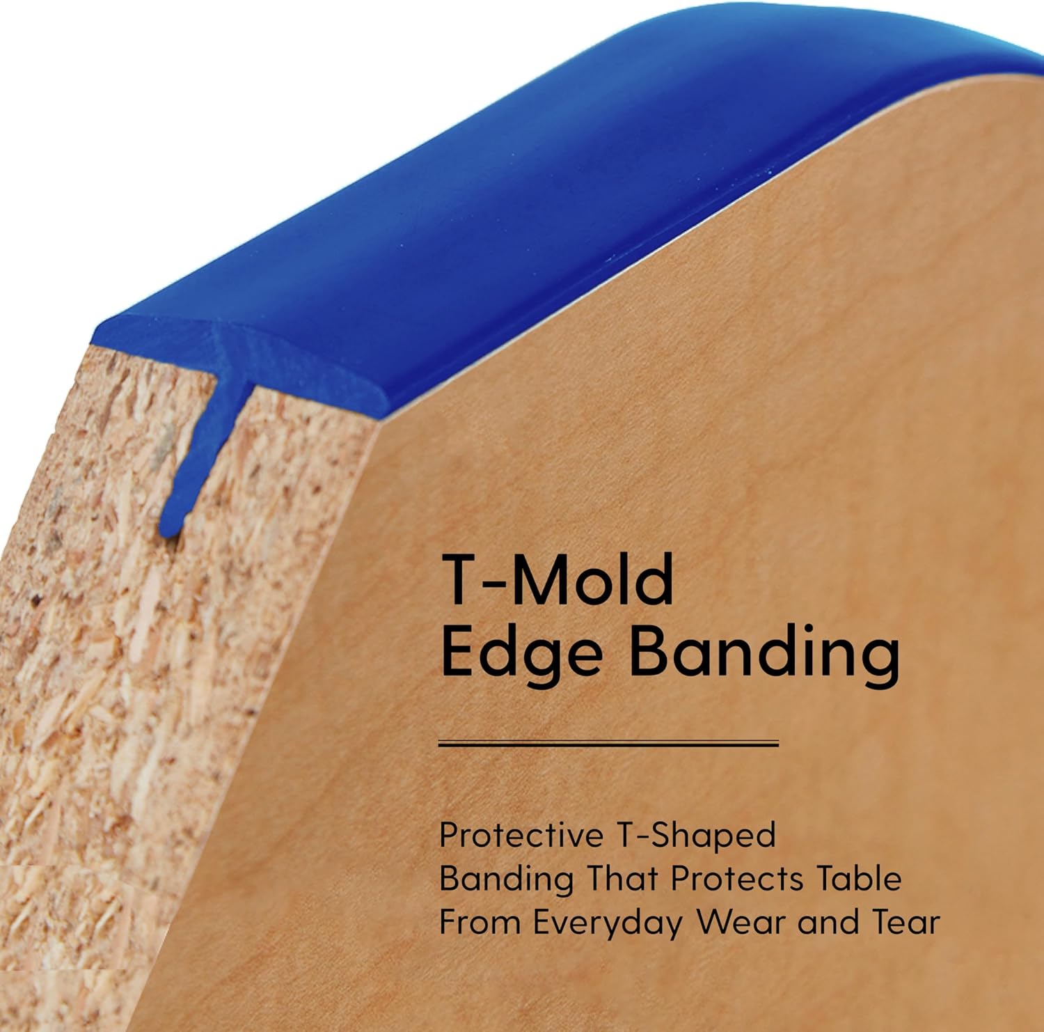 FDP Rectangle Activity School and Classroom Kids Table (24 x 36 inch), Chunky Toddler Leg, Adjustable Height 15-24 inches - Maple Top and Blue Edge