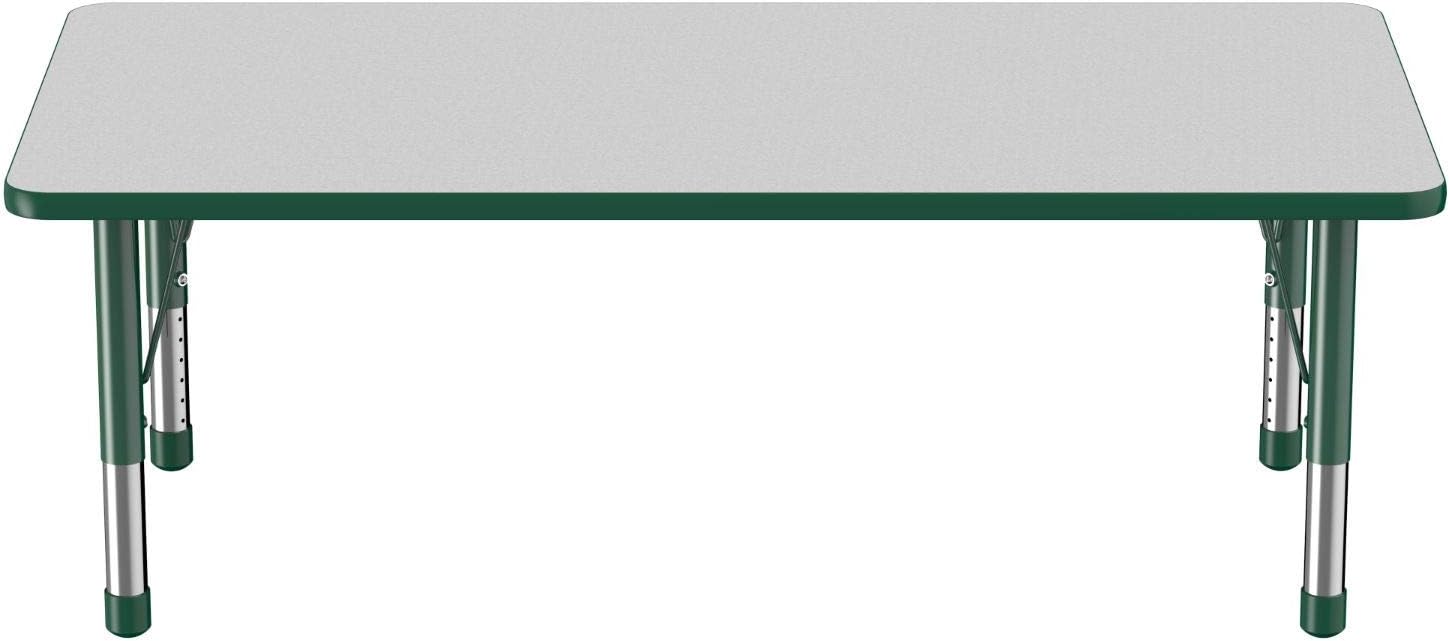 FDP Rectangle Activity School and Classroom Kids Table (30 x 60 inch), Toddler Legs, Adjustable Height 15-24 inches - Gray Top and Green Edge