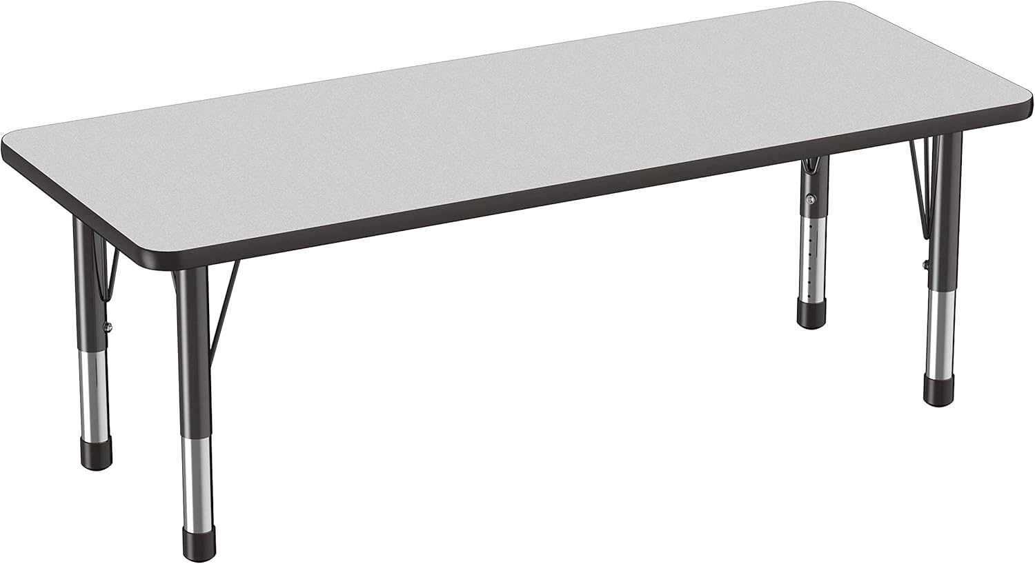 FDP Rectangle Activity School and Classroom Kids Table (24 x 60 inch), Chunky Toddler Legs, Adjustable Height 15-24 inches - Gray Top and Black Edge