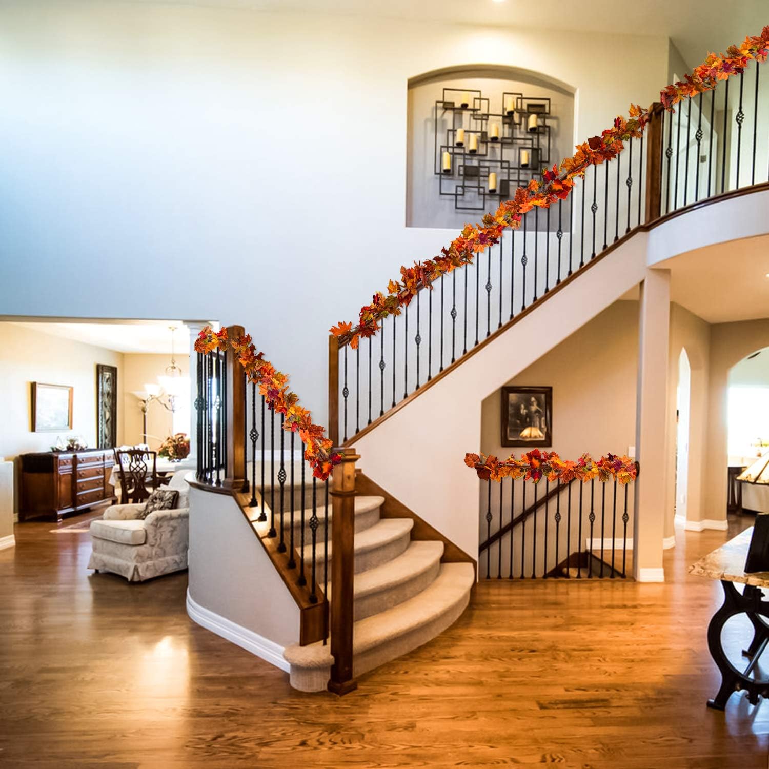 - 【Proper Length】-- 2 strand of 5.9 feet artificial maple leaf garlands, total length: 11.8 feet.