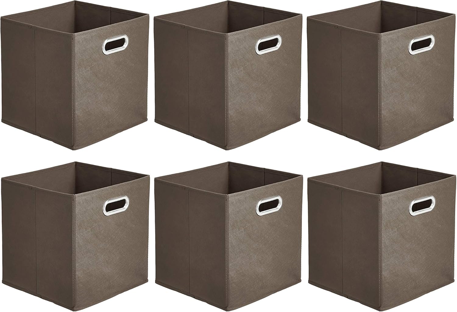 Amazon Basics Collapsible Cube Storage Organizer Bins, 6-Pack, 10.5 x 10.5 x 11 inches, Taupe