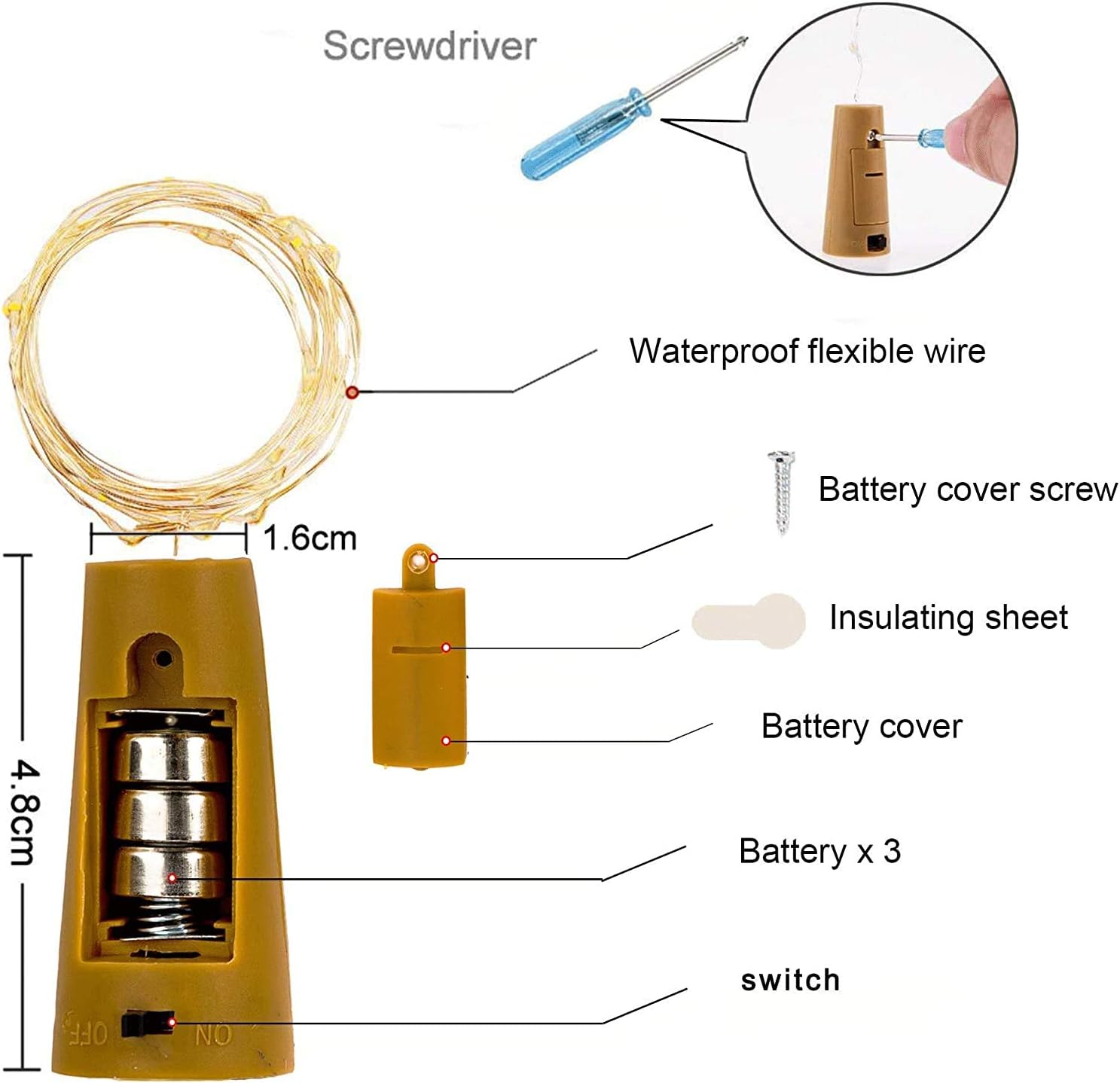 - Battery Powered and More Saving: Every wine bottle cork lights are powered by 3 PCS LR44 batteries (Batteries included) and no need to power socket and convenient.Up to 48 hours of use and brighter than 10LED