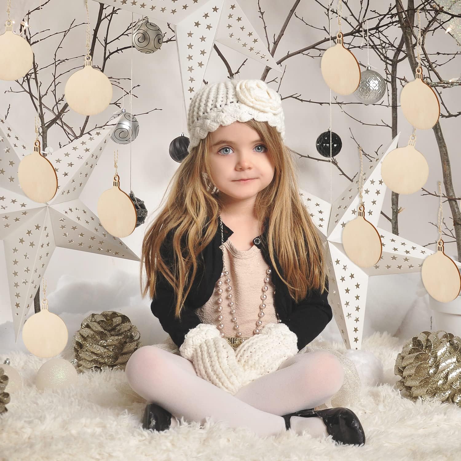 Blulu 100 Pieces Christmas Wooden Ornaments Star Round Wood Slices Wood Snowflake Angel Shape Christmas Tree Hanging Embellishments with 100 Pieces Cords (Style 3)