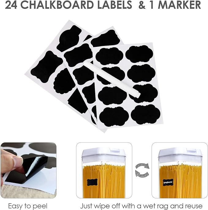 - 24 Reusable Labels----These labels will help you never confuse flour with powdered sugar or baking powder with baking soda. They are reusable, you can switch contents whenever you need.