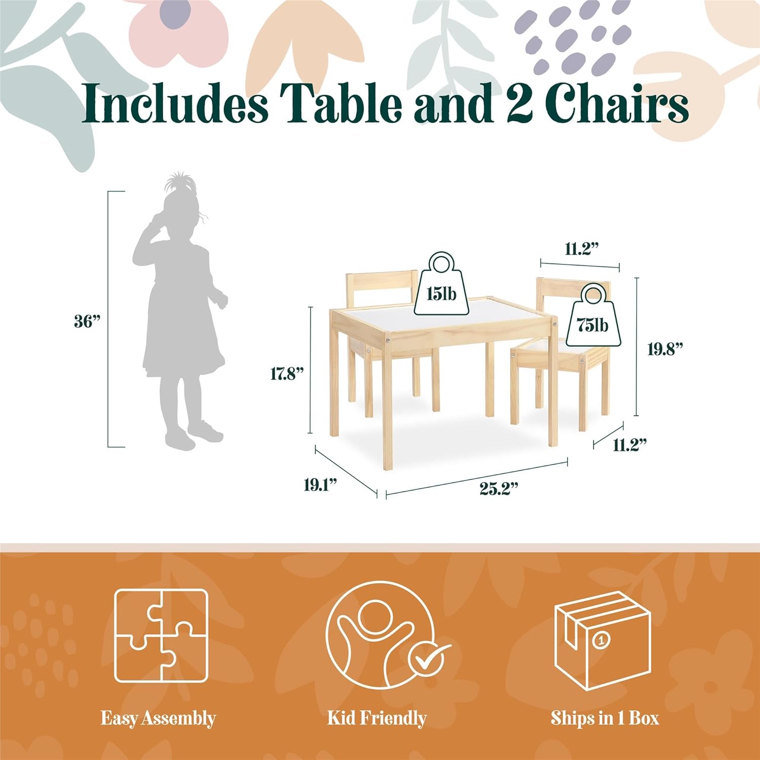 - Sturdy wood construction that includes 1 toddler table and chairs at a kid-friendly height, suitable as a kids table and chairs for any playroom