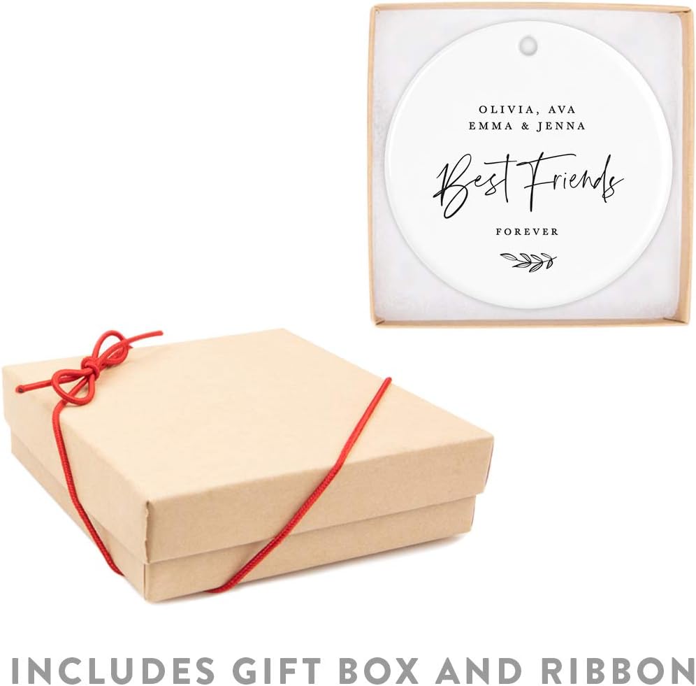 Andaz Press Personalized Best Friends Round Ceramic Porcelain Christmas Tree Ornament Keepsake Collectible Gift, Olivia, Ava, Emma & Jenna, Best Friends Forever 2025, Antique Handdrawn, 1-Pack