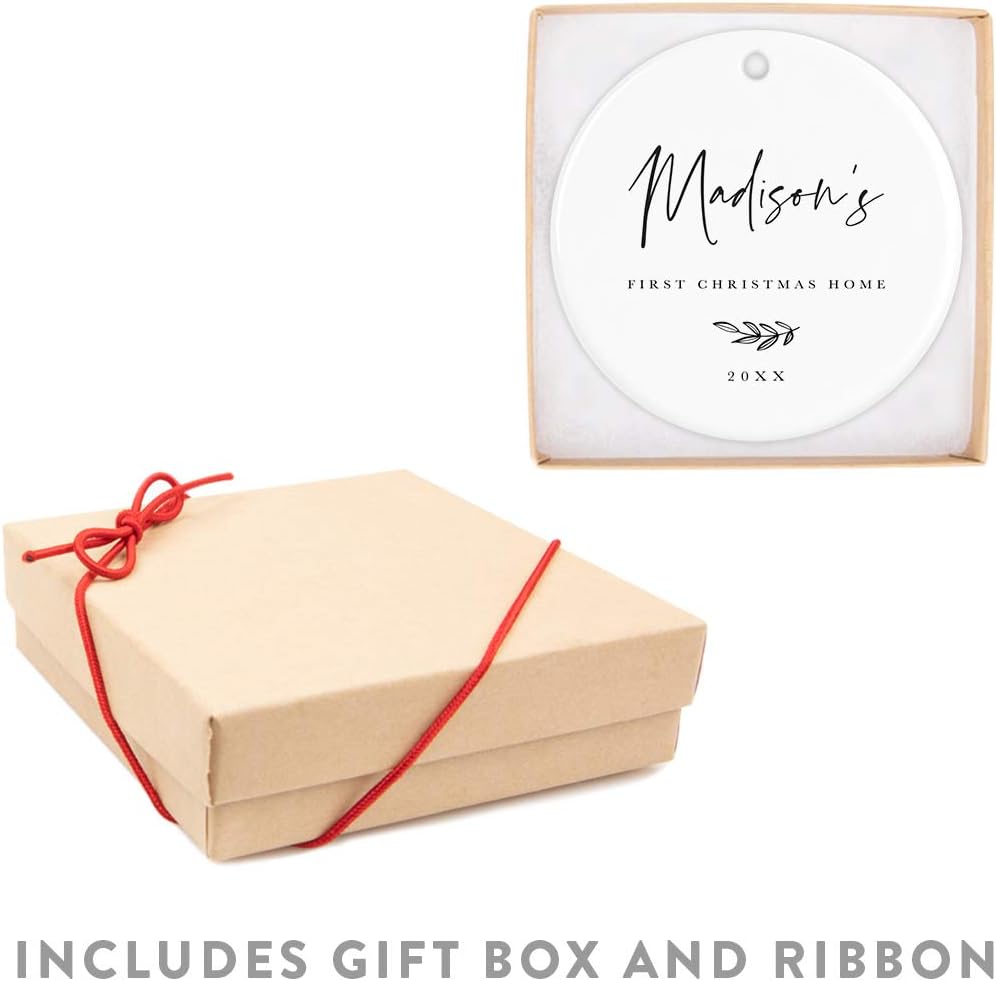 Andaz Press Personalized Adoption Round Ceramic Porcelain Christmas Tree Ornament Keepsake Collectible Gift, Madison's First Christmas Home 2024, Antique Handdrawn, 1-Pack