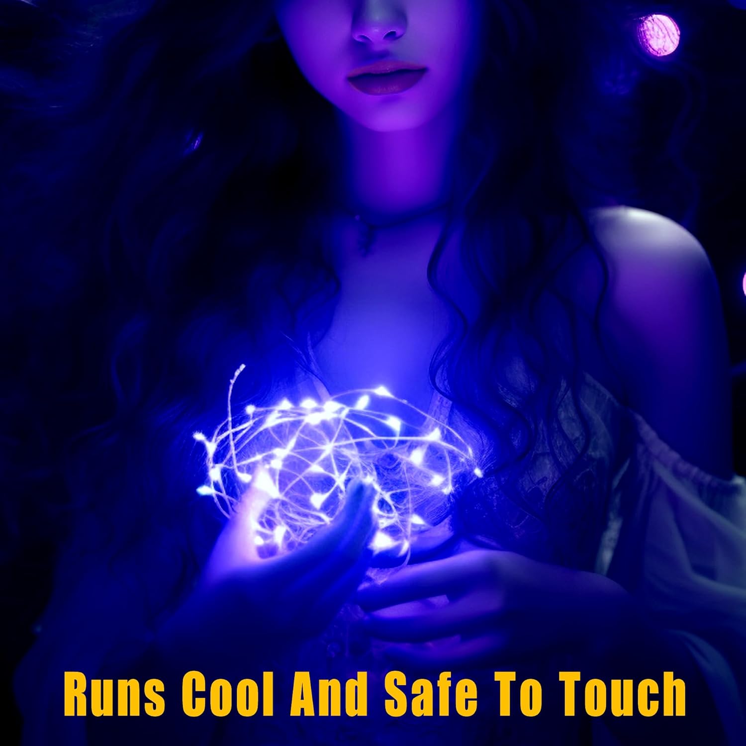 - Battery Operated Fairy Lights:6pcs lights per packing,battery compartment extension cord is 0.6ft,each light is with 6.25 feet flexible thin silver copper wire with 20pcs bright micro leds,Blue Lighting. They glint in the dark, decorate your patio, deck, front porch, bedroom,wedding, party, shop, restaurant ,room and Thanksgiving,Christmas Centerpiece Decor , And the copper wire disappeared into the night, Leaving only light.