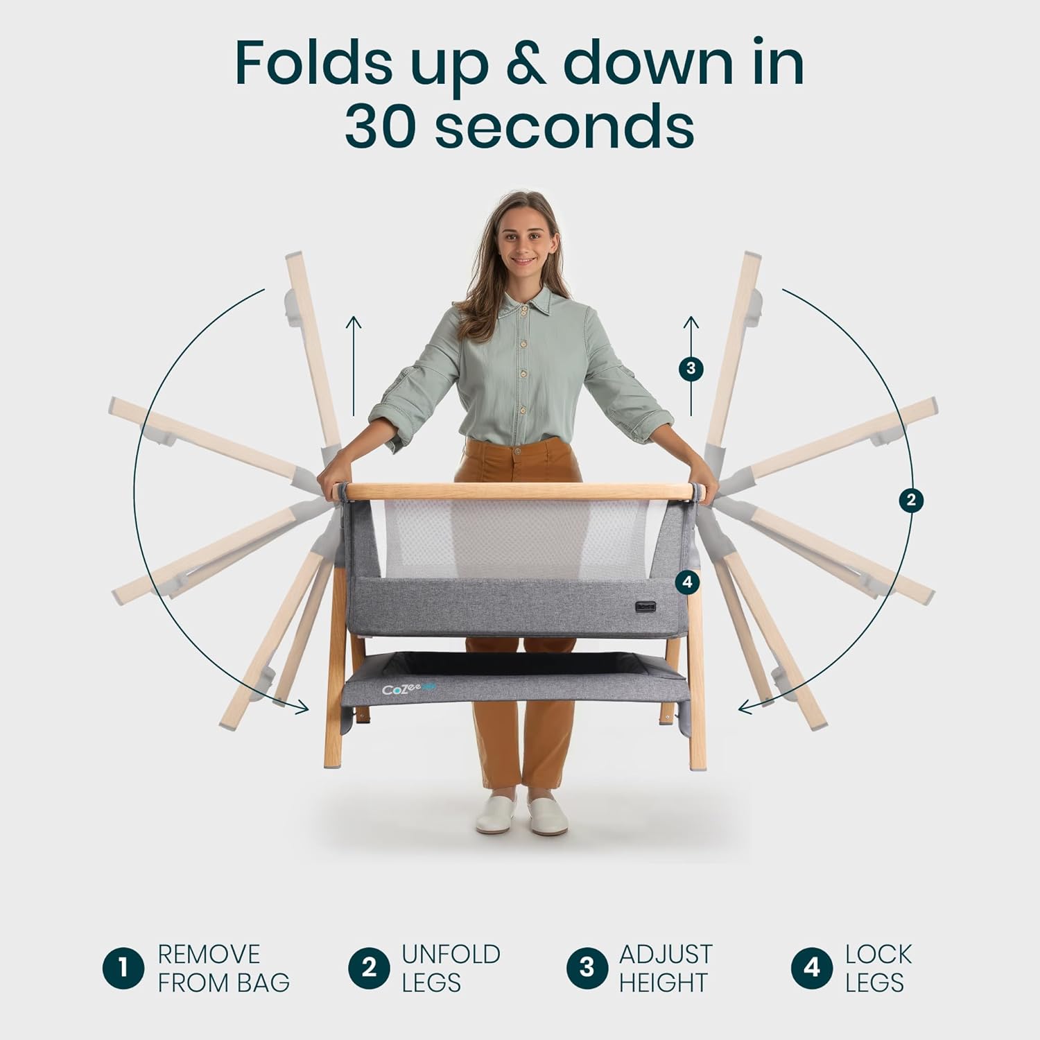 CoZee® Air Baby Bassinet & Bedside Sleeper - Rocking Bassinet for Baby, Fast-Folding with Travel Bag, Deluxe Airflow Mattress & 6 Mattress Heights, 0-6 Months (Oak & Charcoal)