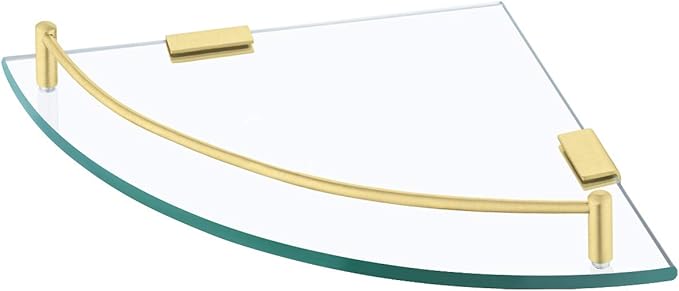 KES Glass Corner Shelf Bathroom Shelf Tempered Glass with Rail SUS 304 Stainless Steel Floating Wall Mount Bracket Brushed Gold, BGS2101A-BZ
