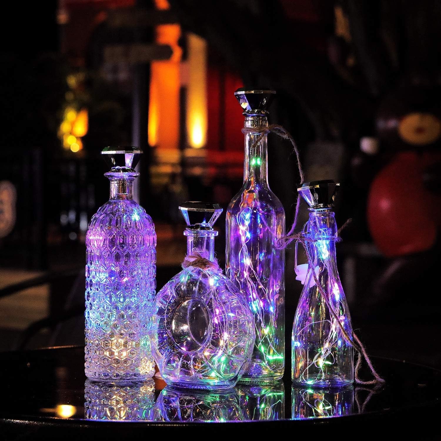 Solar Wine Bottle Lights Outdoor, Cork Lights for Wine Bottles Waterproof, Fairy Lights Solar for Wedding Party Garden Patio Pathway Decor, Suitable for Most Wine Bottle Mouths-MultiColor (8 Pack)