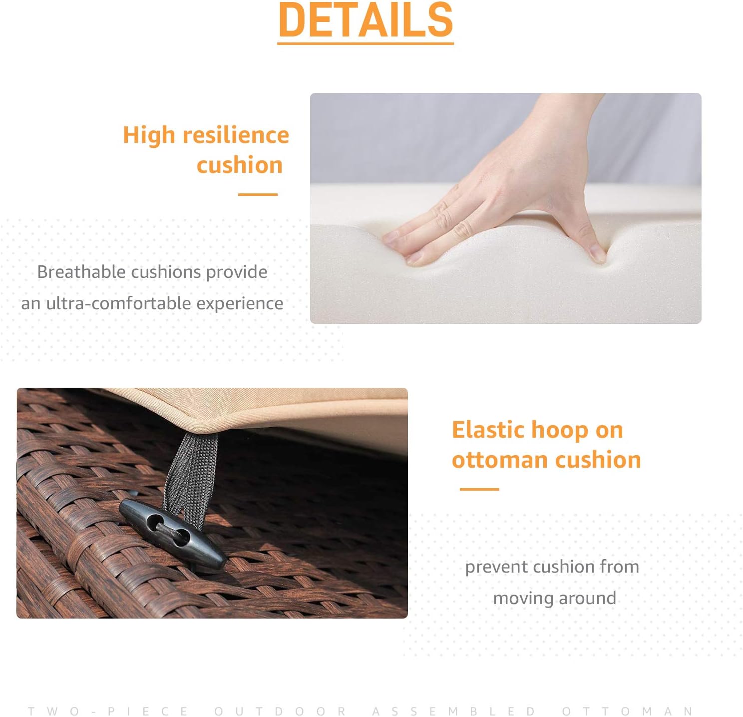 - 👍【Come Assembled】--No Assembly Required. Individual Ottoman Weight Capacity: 250 lbs; Easy to use and save time. Shipping in 1 box. We will advise you to rotate the elastic hoop several times before fastening it to the horn buckle for a tighter fit if customers find the cushion to be a bit unstable, minimizing movement and enhancing stability.