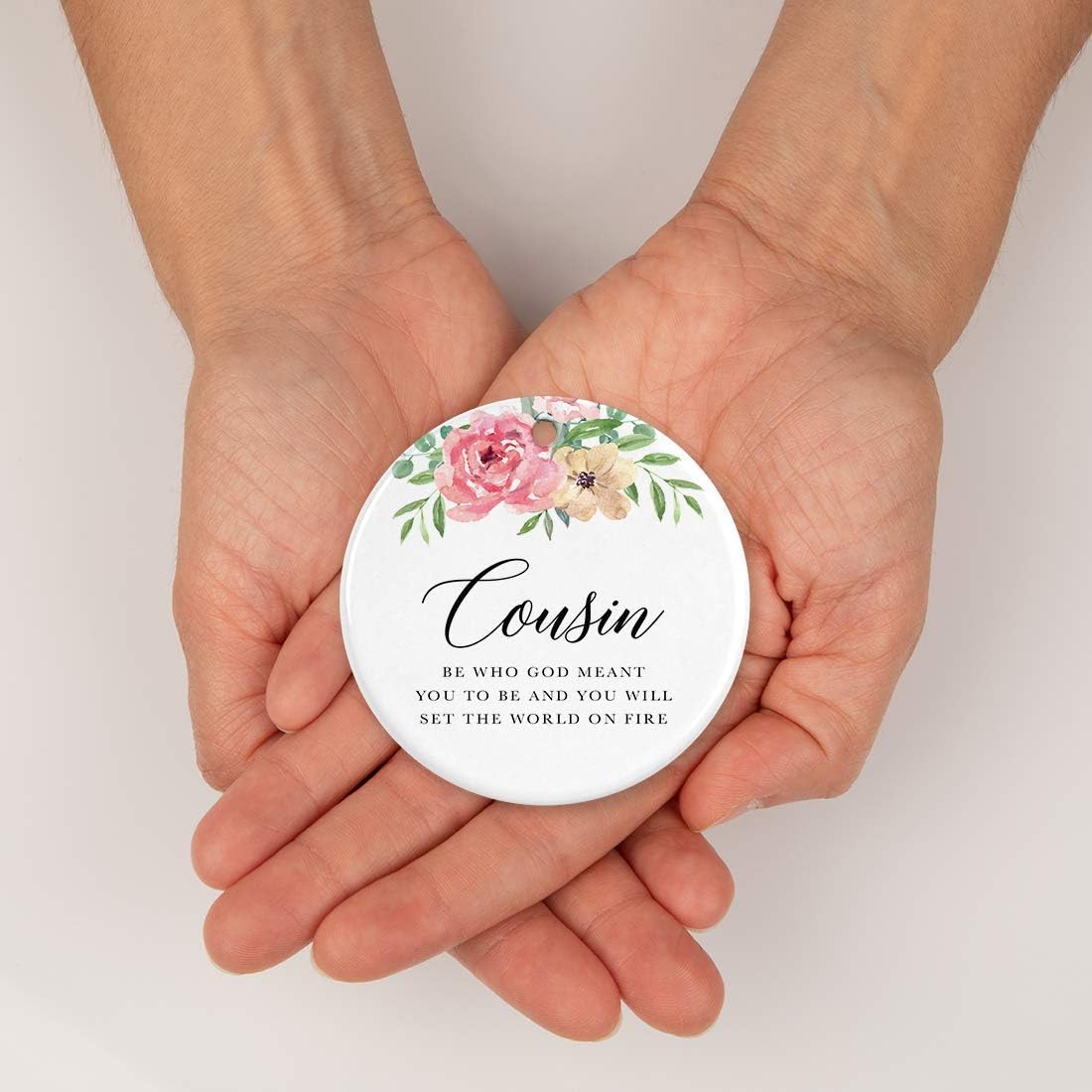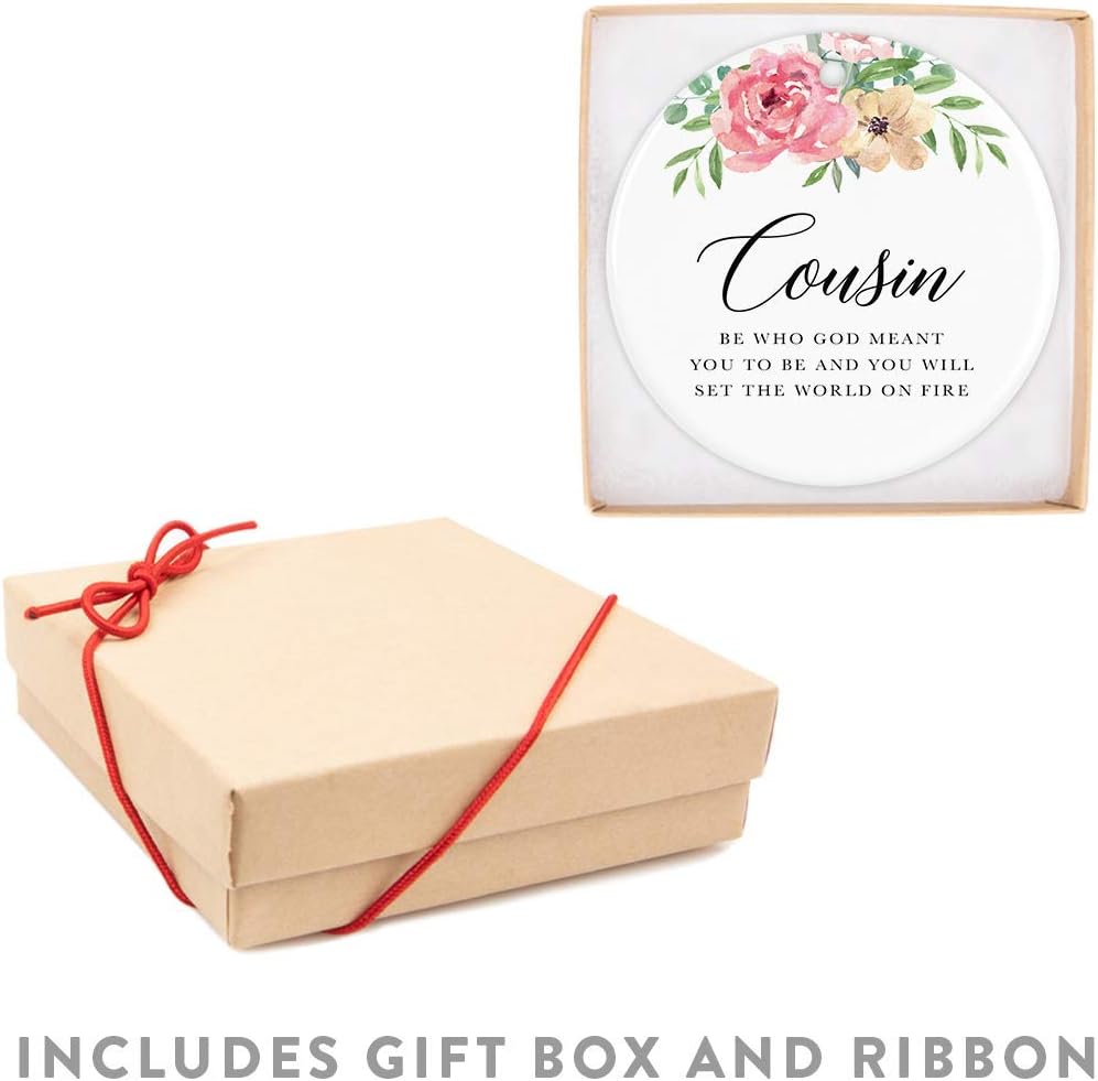 Andaz Press Round Ceramic Porcelain Christmas Tree Ornament Keepsake Gift for Cousins, Cousin Be Who God Meant You to Be and You Will Set The World On Fire, 1-Pack