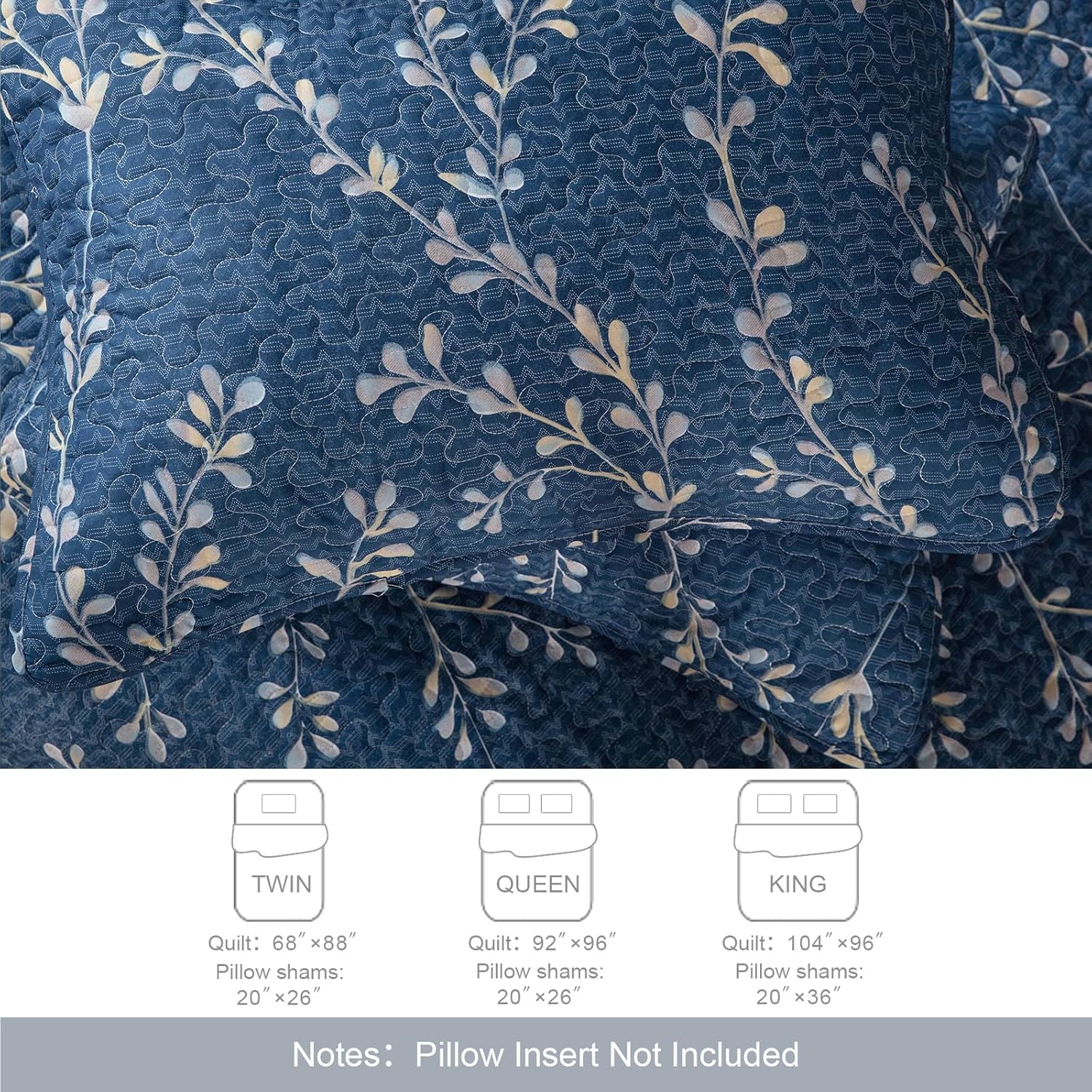 - Design: Floral branches patterns are printed with special printing and dyeing crafts which make color more vibrant and ensure a better color fastness. Sewed with exquisite neat stitching, the navy flowers bedspreads bring a stylish and elegant decoration to your bedroom