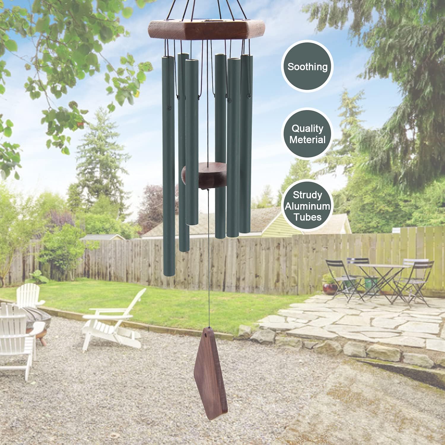 Small Green Wind Chimes for Outside, Tuned Soothing Melody, Sympathy Chimes for Mom/Housewarming, Outdoor Decoration