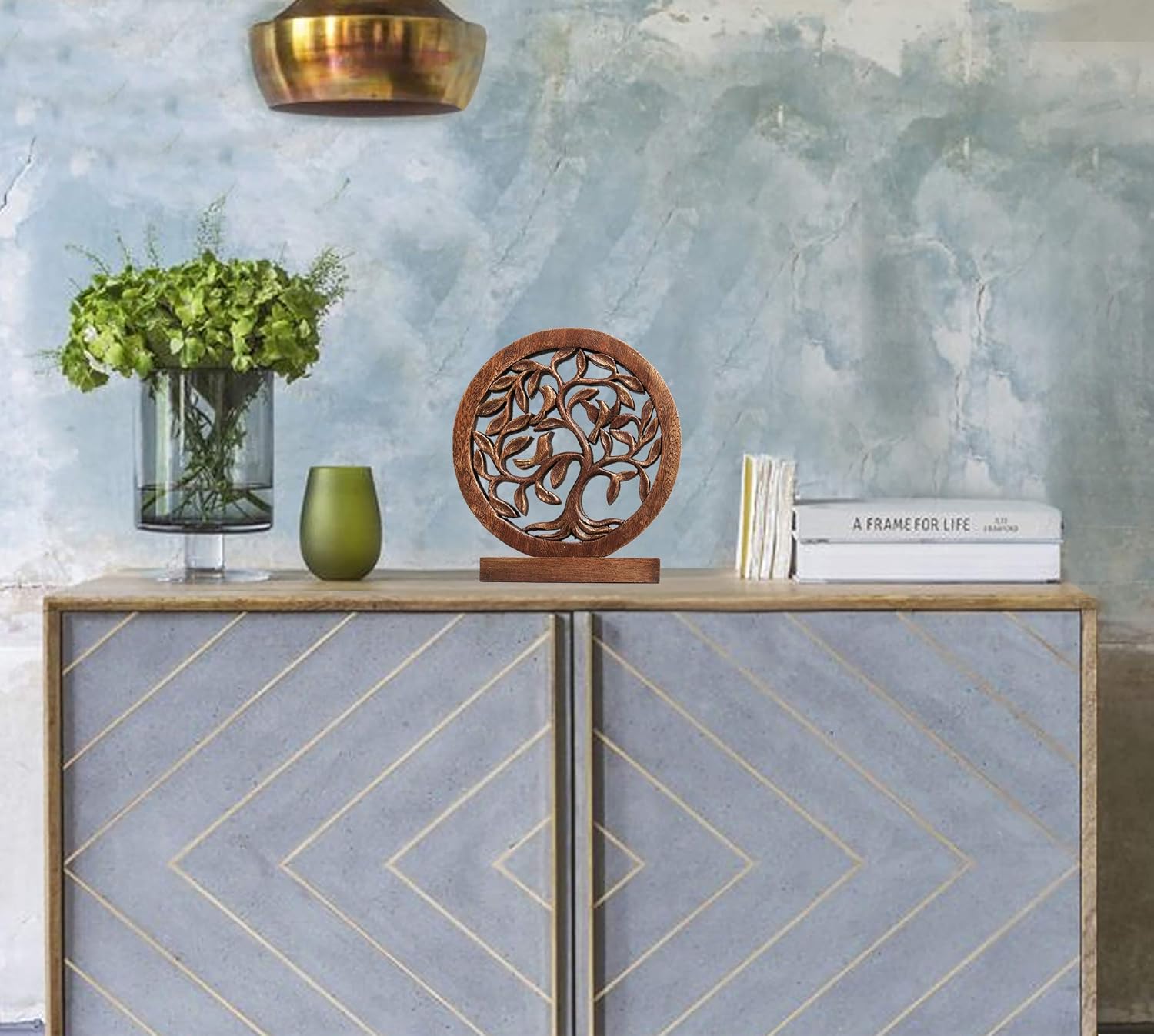 Decozen Wooden Tree of Life Sculpture - Birthday Gifts, Home, Office, Living Room, Shelf, Fireplace, Farmhouse, Tabletop, Boho and Mantle Decor - Decorations